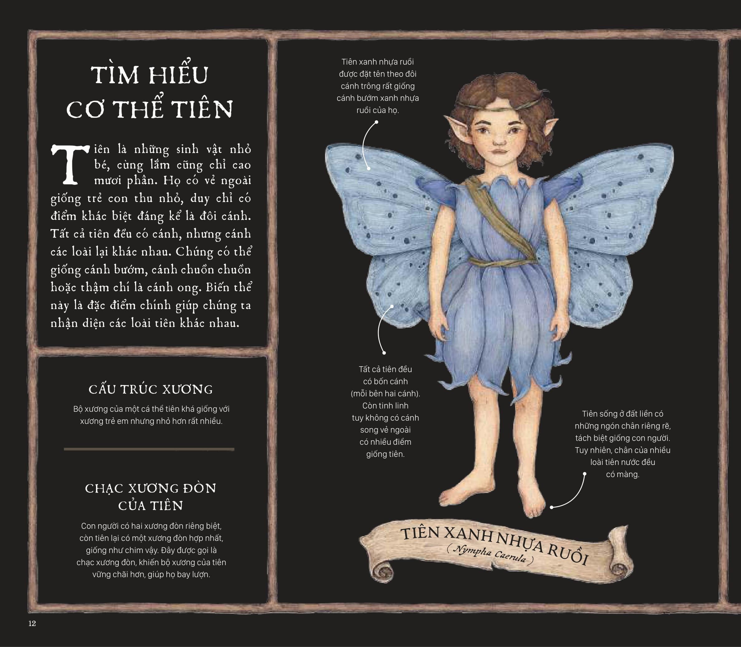 Mua tại TiktokCẩm Nang Về Tiên Bạn đọc thân mến, Bạn đã sẵn sàng cho chuyến hành trình có một không hai chưa? Vậy hãy lật giở cuốn sách này ngay thôi nào! Tiên có thật và hiện diện quanh ta, chỉ cần bạn nhanh trí, tinh mắt và đủ may mắn để trông thấy những tạo vật kì diệu này trong vườn nhà hay trên gác xép mà thôi. Biên soạn bởi nhà thực vật học lẫy lừng – Giáo sư Elsie Arbour, cuốn cẩm nang kì công này được bà gửi tới cháu gái nhằm giúp cô khám phá đời sống bí mật của các loài tiên cũng như vai trò của họ trong thế giới tự nhiên. Tập hợp nhiều ghi chú thực địa chính xác và minh họa cầu kì, từng trang sách tiết lộ đa dạng các loài tiên khác nhau trên khắp đ.ịa cầu, đi sâu phân tích đặc điểm nhận dạng, môi trường sống, tập tính và cả ngôn ngữ bí ẩn của họ. Bạn chắc chắn sẽ phải kinh ngạc trước thế giới các loài tiên siêu sống động và thú vị đấy!
