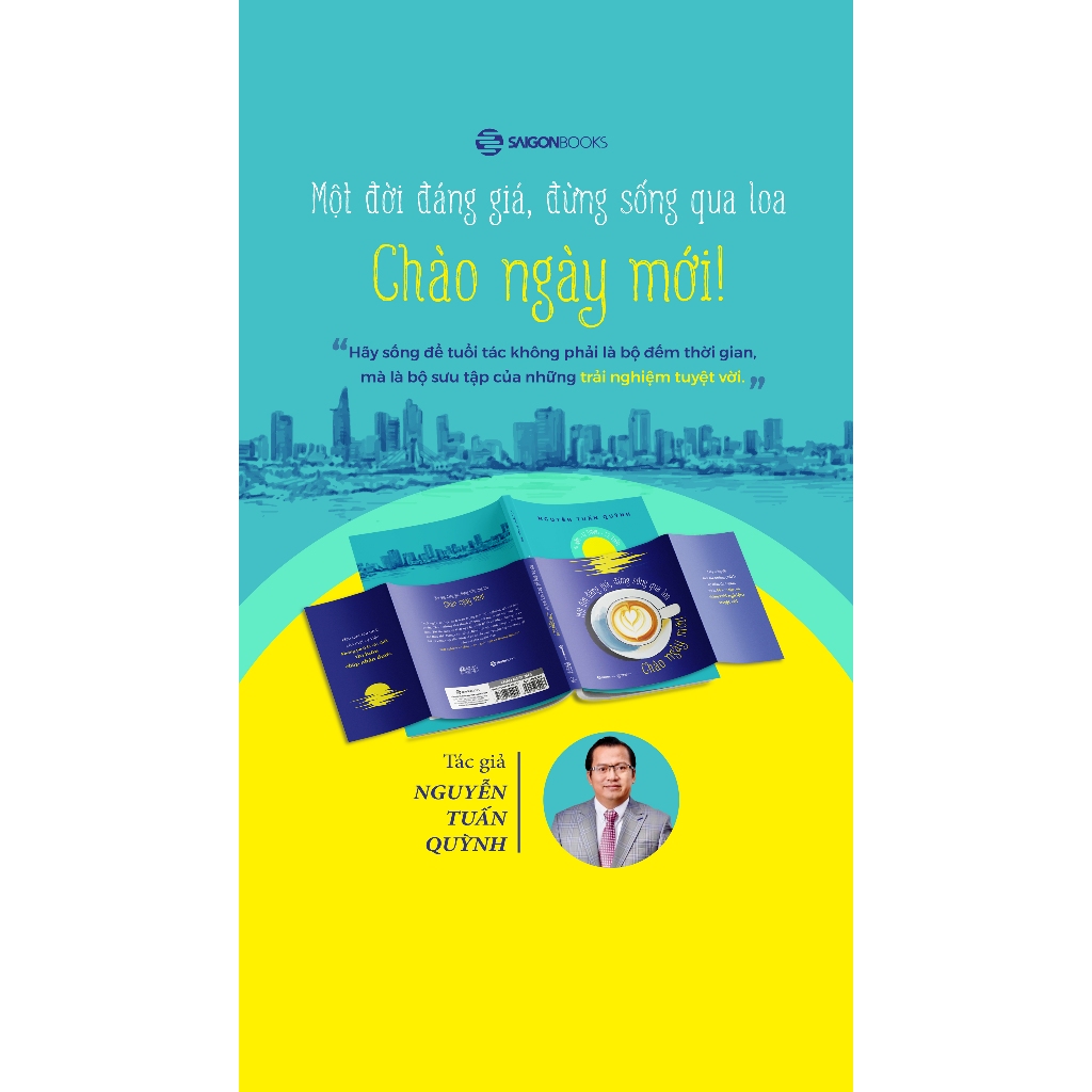 Chào Ngày Mới - Một Đời Đáng Giá Đừng Giống Qua Loa của Nguyễn Tuấn Quỳnh, phát hành tháng 09/2024 bởi Saigon Books và NXB Thế Giới, là một tác phẩm truyền cảm hứng giúp người trẻ sống ý nghĩa hơn. Với thông điệp “Một đời đáng giá, đừng sống qua loa!”, cuốn sách chỉ ra những nghịch lý trong lối sống hiện đại – từ việc mơ thành thiên tài nhưng lười biếng, đến chạy theo danh lợi mà quên yêu thương. Qua những câu chuyện giản dị, tác giả dẫn dắt độc giả chiêm nghiệm, học hỏi, và trui rèn bản thân để trở thành phiên bản tốt nhất, từng bước lấp đầy bức tranh cuộc sống bằng nỗ lực và yêu thương.