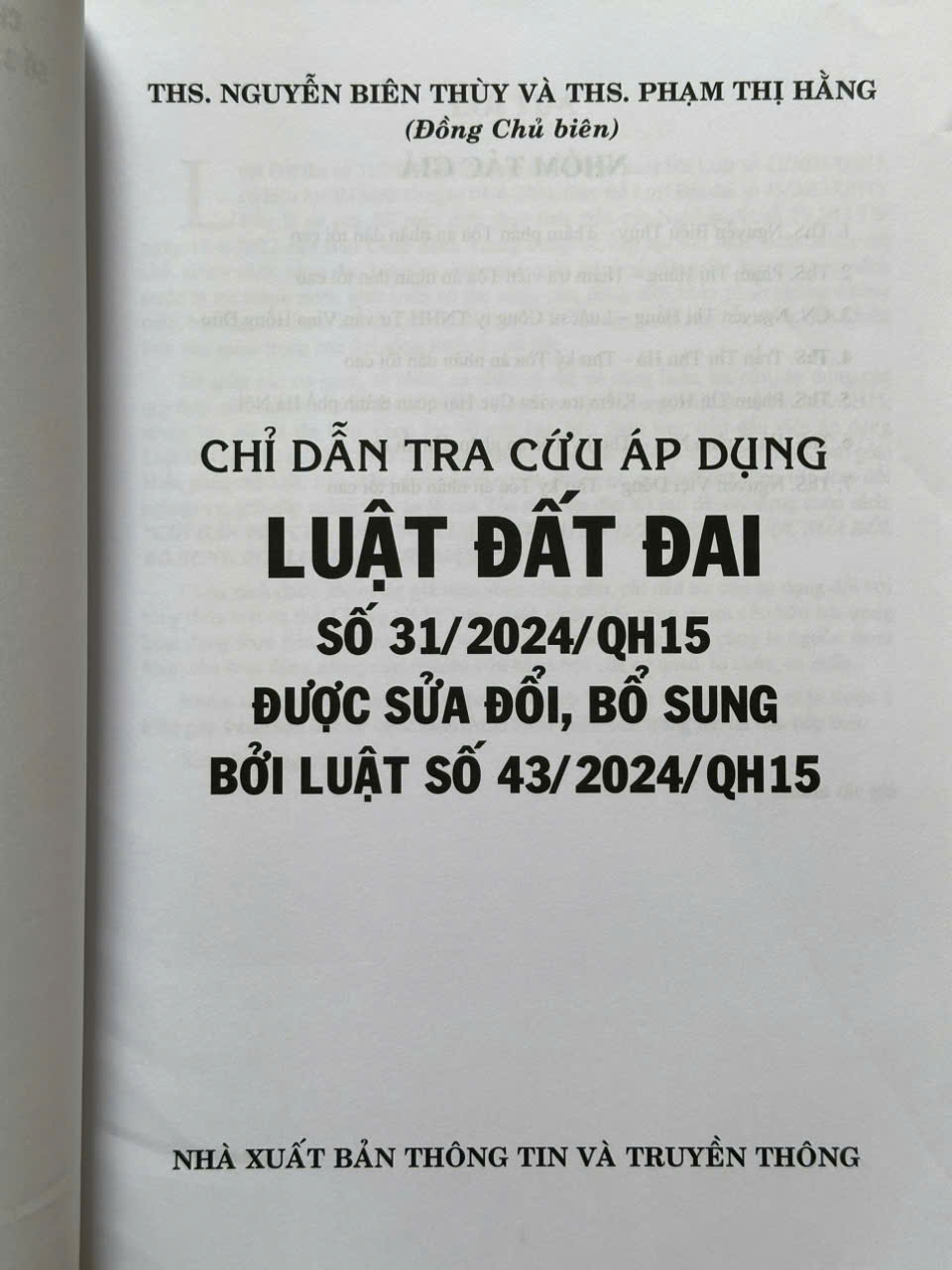 Chỉ dẫn tra cứu áp dụng luật đất đai số 31/2024/QH15 được sửa đổi, bổ sung bởi luật số 43/2024/QH15 Tác giả: Ths. Nguyễn Biên Thùy và ThS. Phạm Thị Hằng (đồng chủ biên) Nhà