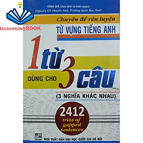 Mua tại TiktokChuyên Đề Rèn Luyện Từ Vựng Tiếng Anh 1 Từ Dùng Cho 3 Câu (3 Nghĩa Khác Nhau) Cuốn sách Chuyên Đề Rèn Luyện Từ Vựng Tiếng Anh 1 Từ Dùng Cho 3 Câu (3 Nghĩa Khác Nhau) do tá giả Vĩnh Bá biên soạn mang đến cho các em học sinh các phương pháp để tự rèn luyện Tiếng Anh chuyên đề từ vựng để làm thật tốt bài thi Tiếng Anh trong kỳ thi THPT Quốc Gia. Tập sách này là bộ sư tập các câu kiểm tra vốn từ vựng góp nhặt từ nhiều nguồn khác nhau. Loại hình bài tập này giúp đo lường độ sâu vốn từ của người đọc theo nghĩa người đọc có thể chưa biết hết mọi nét nghĩa của một từ.