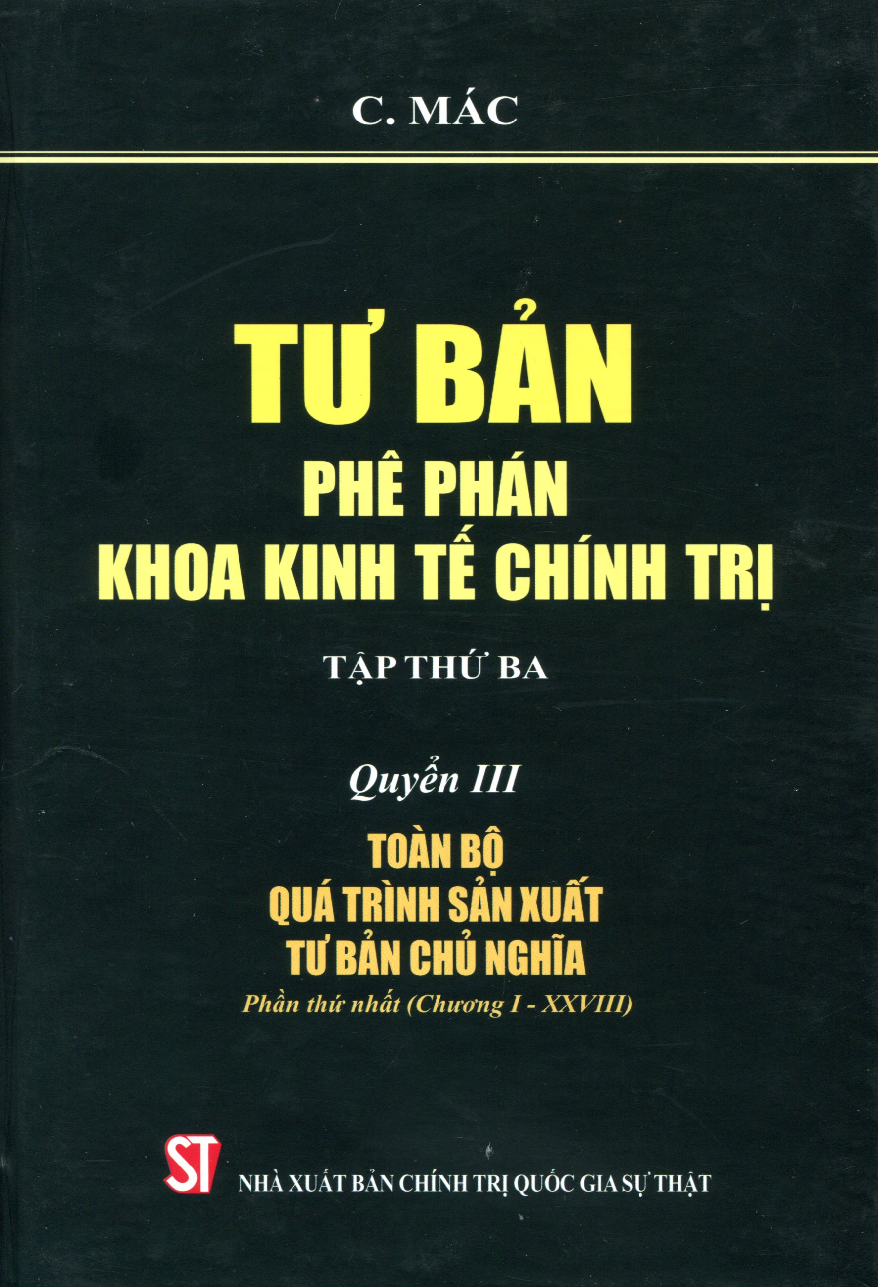 Tập thứ ba: + Quyển III: Toàn bộ quá trình sản xuất tư bản chủ nghĩa – Phần thứ nhất (Chương I – XXVIII)