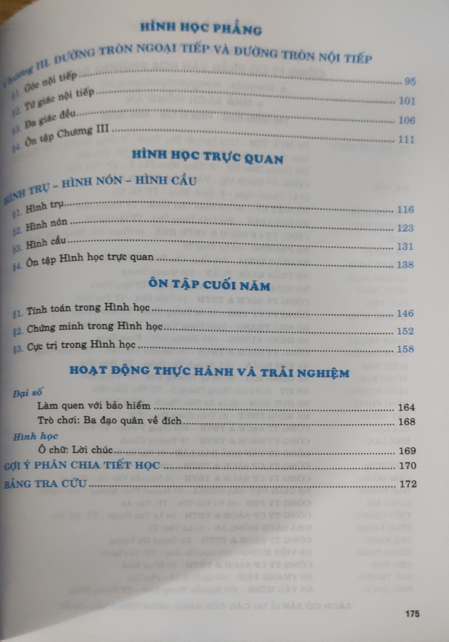 - Em Học Toán Lớp 9 Tập 2 (Dùng Chung Cho Các Bộ SGK Hiện Hành) Cuốn sách này là của các em, nó sẽ là người bạn đi cùng với các em trong cả năm học. Các em nên biết sử dụng cuốn sách để đạt hiệu quả cao nhất. Đọc Tiêu đề của tiết học, em hãy nghĩ xem mình đã biết gì về chủ đề này và thử hình dung những gì sẽ được học trong bài. Mục Đi đến kiến thức giúp các em làm quen với nội dung sắp học, tạo tình huống để các em hứng thú với bài học mới. Có thể có những câu hỏi ở mục này mà các em chưa trả lời được, nhưng không sao, các em sẽ hiểu sau khi học bài mới. Mục Hình thành và áp dụng kiến thức rất quan trọng, giúp các em có thêm những kiến thức, kĩ năng và phương pháp mới. Các em cần hiểu kĩ những nội dung được đóng khung, vì đó là những kiến thức quan trọng nhất, và tự làm các câu hỏi áp dụng trong mục này. Mục Tự ôn lí thuyết giúp các em tự kiểm tra việc tiếp thu những kiến thức quan trọng nhất của bài học, từ đó có chìa khoá để giải bài tập. Mục Luyện tập dành cho các em tự làm để củng cố và hoàn thiện các kiến thức, kĩ năng vừa tiếp nhận. Các bài tập được đánh số liên tục ở mỗi chương. Các em cần làm hết các bài tập này vì chúng là những bài tập cơ bản nhất. Mục Sổ tay kinh nghiệm là những kinh nghiệm về cách giải toán, các em có thể bổ sung vào đó những kinh nghiệm của chính mình, nếu có. Mục Vận dụng - Đào sâu gồm hai nội dung. Nội dung Vận dụng giúp các em áp dụng những điều đã học vào các tình huống trong cuộc sống. Nội dung Đào sâu không yêu cầu tất cả các em phải thực hiện. Các em đọc để hiểu thêm, và nếu thấy đủ sức thì tiếp tục làm. Mục Tìm tòi khám phá giúp các em tìm tòi và phát triển những điều mới mẻ. Cũng không yêu cầu tất cả các em phải thực hiện đủ các nội dung này. Cuối sách có phần Hoạt động thực hành và trải nghiệm gồm những nội dung thực hành, do đạc và những trò chơi giúp các em vui học. Em hãy cùng học, cùng chơi với các bạn theo từng cặp, theo từng nhóm và trong cộng đồng. Các bài tập trong sách thường không khó, nhưng đều có tình huống, giúp các em nắm vững kiến thức, rèn luyện kĩ năng, trau dồi phương pháp. Các em nên tự suy nghĩ và giải chúng. Các bài tập này sẽ giúp các em nhiều điều, và chúng còn có ích ngay cả khi các em đã rời trường. Tất cả các kiến thức của môn Toán, cũng như của các môn học khác, đều sẽ rất cần thiết cho các em, nếu các em muốn trở thành người làm chủ cuộc sống của mình. Trong các bài tập còn có những Bài toán trong đoạn văn, ở đó có thêm nhiều thông tin bổ sung cho đề bài, đôi khi có cả những con số không dùng đến, nhằm giúp các em biết chọn lọc những nội dung và số liệu cần thiết để tìm lời giải. Cuốn sách được viết theo hướng Dễ hiểu - Đầy đủ – sinh động - Tự học - Thực tế. Các em hãy giữ gìn cuốn sách, không viết vào sách nếu muốn cho em của mình hay cho bạn khác sử dụng. Cũng có thể em sẽ giữ lại cuốn sách này cho mình để dùng trong những năm sau. Cuốn sách sẽ đồng hành với các em trong một thời gian dài. Đi kèm với cuốn sách này, có cuốn Bài tập Em học Toán 8 để giúp các em luyện tập thêm. Công ty phát hành Nhà Sách Hồng Ân Năm Xuất Bản 2024 Tác Giả Vũ Hữu Bình Kích Thước 19 x 27 cm Nhà Xuất bản Đại Học Sư Phạm Số Trang 174 Bìa Mềm