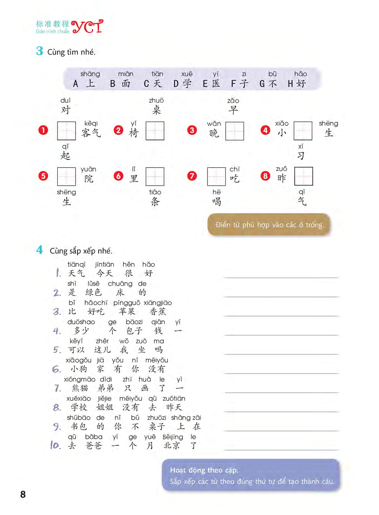 Nội dung sách: Sách YCT là sách tiếng hoa thiếu nhi bản quyền chuẩn mẫu chương trình dạy cho các bé từ vở lòng bằng những bài học đơn giản nhất. Giáo Trình Chuẩn YCT