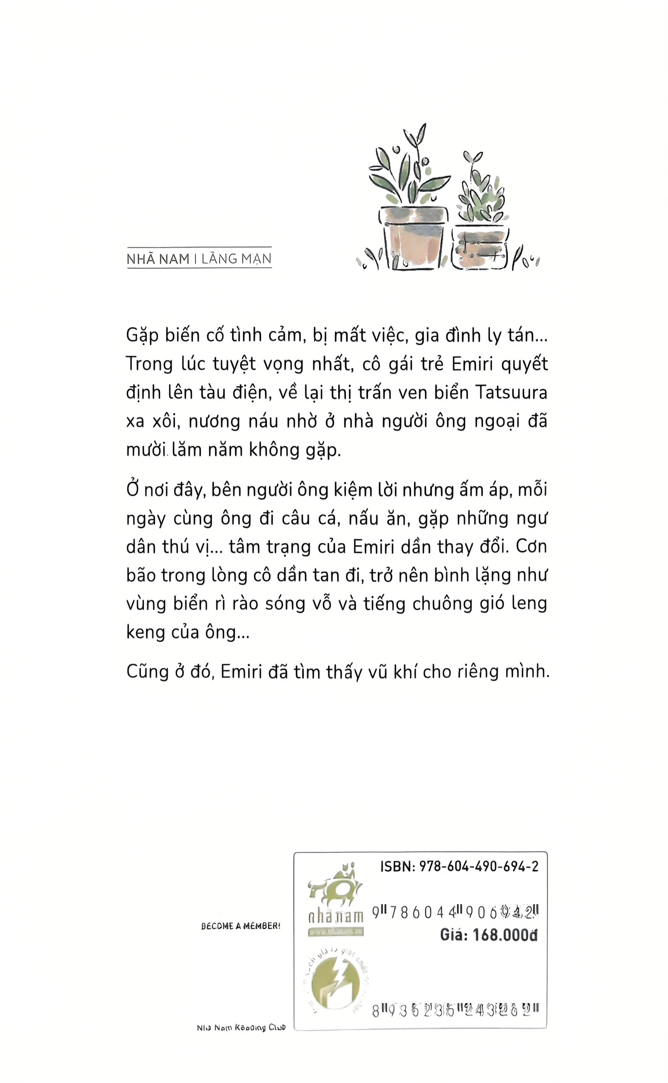 Gặp biến cố tình cảm, bị mất việc, gia đình ly tán… Trong lúc tuyệt vọng nhất, cô gái trẻ Emiri quyết định lên tàu điện, về lại thị trấn ven biển Tatsuura xa xôi, nương náu nhờ ở nhà người ông ngoại đã mười lăm năm không gặp. Ở nơi đây, bên người ông kiệm lời nhưng ấm áp, mỗi ngày cùng ông đi câu cá, nấu ăn, gặp những ngư dân thú vị... tâm trạng của Emiri dần thay đổi. Cơn bão trong lòng cô dần tan đi, trở nên bình lặng như vùng biển rì rào sóng vỗ và tiếng chuông gió leng keng của ông... Cũng ở đó, Emiri đã tìm thấy v.ũ khí cho riêng m.ình.