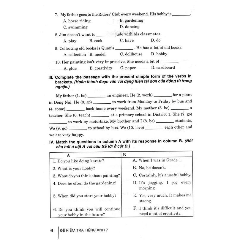 Sách bao gồm nhiều để kiểm tra với rất nhiều dạng khác nhau để các em luyện tập cách giải đề. Nội dung các đề kiểm tra bám sát các phần Ngữ âm, Từ vựng và Ngữ pháp, cũng như các chủ đề của mỗi bài học trong sách giáo khoa Tiếng Anh 7, hơn nữa còn được mở rộng thêm nên sẽ rất dễ dàng để các em vừa kiểm tra lại kiến thức đã học ở trường, vừa luyện tập và phát triển các kĩ năng phát âm, đọc, nói và viết.