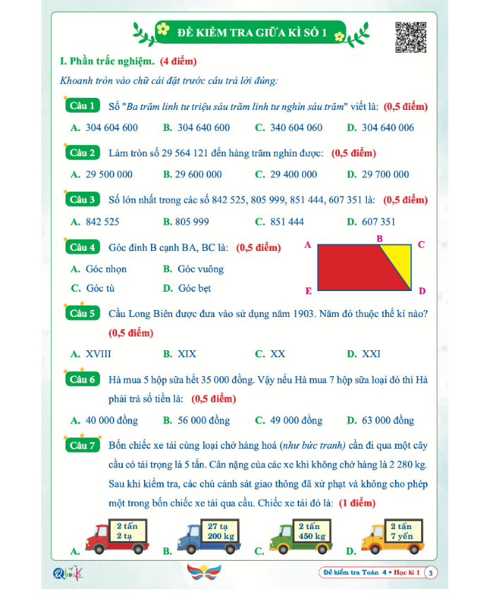 Đề số 1 | Đề kiểm tra giữa học kì 1 | Toán lớp 4 | Cánh Diều | Thầy Nguyễn Văn Quyền