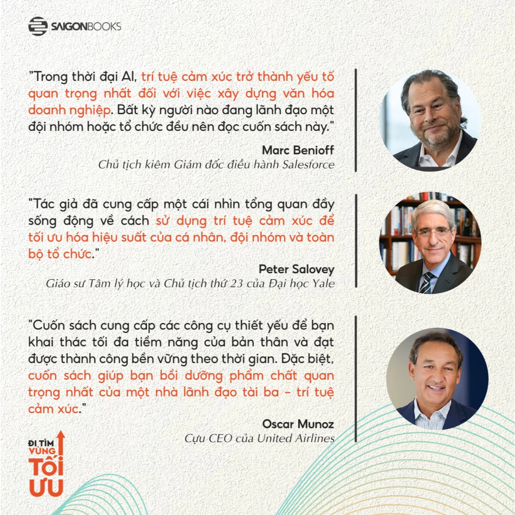 Nhà Phát Hành : Saigonbooks Tác giả : Daniel Goleman & Cary Cherniss Nhà Xuất Bản : Nhà Xuất Bản Thế Giới Năm Xuất Bản: 2025 Số trag: 324   ĐI TÌM VÙNG TỐI ƯU - OPTIMAL Duy trì sự xuất sắc mỗi ngày bằng trí tuệ cảm xúc Trong thời đại nhiều biến động, khi áp lực công việc rất dễ dẫn đến kiệt sức, quyển sách Đi Tìm Vùng Tối Ưu đã chỉ ra con đường bền vững hơn: vận dụng trí tuệ cảm xúc (Emotional Intelligence – EI) để xây dựng sự tập trung, nuôi dưỡng năng lượng và gắn kết cảm xúc. Là tác phẩm từ hai chuyên gia tâm lý nổi tiếng thế giới là Daniel Goleman và Cary Cherniss, Đi Tìm Vùng Tối ưu đã nhanh chóng được cộng đồng lãnh đạo & chuyên gia hàng đầu thế giới đánh giá cao ngay khi vừa ra mắt.   4 Phần – 16 Chương: Sống và làm việc trong trạng thái tối ưu   ► Thay đổi cách tiếp cận về “xuất sắc” Sách không ca ngợi những khoảnh khắc “đỉnh cao” hiếm hoi, mà chỉ ra cách duy trì trạng thái làm việc, học tập hiệu quả và cân bằng mỗi ngày. Đây là sự “xuất sắc bền vững”, không phải thành tích chớp nhoáng.   ► Trí tuệ cảm xúc (EI) là nền tảng Daniel Goleman và Cary Cherniss cho thấy 04 năng lực EI là tự nhận thức, tự quản lý, thấu cảm, quản lý quan hệ chính là chìa khóa giúp con người đạt hiệu suất đỉnh cao, tránh kiệt sức và tạo dựng sự gắn kết trong mọi môi trường.   ► Giải pháp cho thời đại “burnout” Trong bối cảnh con người ngày càng dễ rơi vào căng thẳng, sách đã kịp thời cung cấp các công cụ khoa học và thực tiễn để chuyển từ kiệt sức sang bền bỉ: phân bổ năng lượng, tái tạo sức mạnh tinh thần và duy trì sự tập trung.   ► Ứng dụng đa tầng: từ cá nhân đến tổ chức Một tổ chức có EI cao sẽ sáng tạo, linh hoạt và chống chọi khủng hoảng tốt hơn. EI không chỉ giúp mỗi cá nhân làm việc thông minh hơn, mà còn giúp nhà lãnh đạo truyền cảm hứng, xây dựng đội ngũ gắn kết, và kiến tạo văn hóa doanh nghiệp bền vững.   ► Hướng tới tương lai đầy biến động EI khi được đặt trong bối cảnh toàn cầu bất định: thay đổi công nghệ, khủng hoảng khí hậu, biến động kinh tế. Bên cạnh đó, tác phẩm dựa trên hàng trăm nghiên cứu tâm lý - thần kinh học, đồng thời lồng ghép nhiều tình huống thực tế từ đời sống, công sở, lãnh đạo, giúp nội dung vừa có chiều sâu, vừa dễ áp dụng.   Lời khen tặng từ giới lãnh đạo toàn cầu Cuốn sách Tìm Vùng Tối Ưu được đón nhận tích cực từ nhiều lãnh đạo và chuyên gia nổi tiếng toàn cầu, như: Marc Benioff (CEO Salesforce), Peter Salovey (Giáo sư Tâm lý học và Chủ tịch thứ 23 của Đại học Yale), Oscar Munoz (Cựu CEO United Airlines),... Về tác giả Daniel Goleman là tác giả của Emotional Intelligence – cuốn sách bán chạy toàn cầu, từng hai lần được đề cử Pulitzer và nhận Giải thưởng Thành tựu Trọn đời của Hiệp hội Tâm lý học Hoa Kỳ. Cary Cherniss, Tiến sĩ Tâm lý học Yale, chuyên nghiên cứu về trí tuệ cảm xúc và phát triển lãnh đạo, đã xuất bản hơn 70 công trình khoa học và tư vấn cho nhiều tập đoàn lớn. Đi tìm vùng tối ưu - Tác phẩm đem đến một thông điệp quan trọng, rằng thay vì làm việc cật lực để rồi rơi vào mệt mỏi, trí tuệ cảm xúc giúp mỗi cá nhân duy trì phong độ ổn định, vừa hoàn thành công việc, vừa gìn giữ sức khỏe tinh thần. Đây cũng là cuốn sách hiếm hoi cho thấy “một ngày tốt đẹp” có giá trị lâu dài hơn nhiều so với một khoảnh khắc đỉnh cao ngắn ngủi.   Hãy để trí tuệ cảm xúc dẫn lối, giúp bạn tìm thấy “vùng tối ưu” của chính mình – nơi công việc, sức khỏe và cảm xúc hòa hợp một cách bền vững!