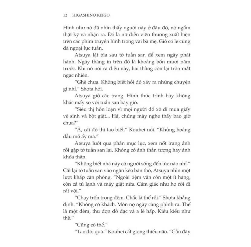 Tài kể chuyện hơn người đã giúp Keigo khéo léo thay đổi các mốc dấu thời gian và không gian, chắp nối những câu chuyện tưởng chừng hoàn toàn riêng rẽ thành một kết cấu chặt chẽ, gây bất ngờ từ đầu tới cuối.