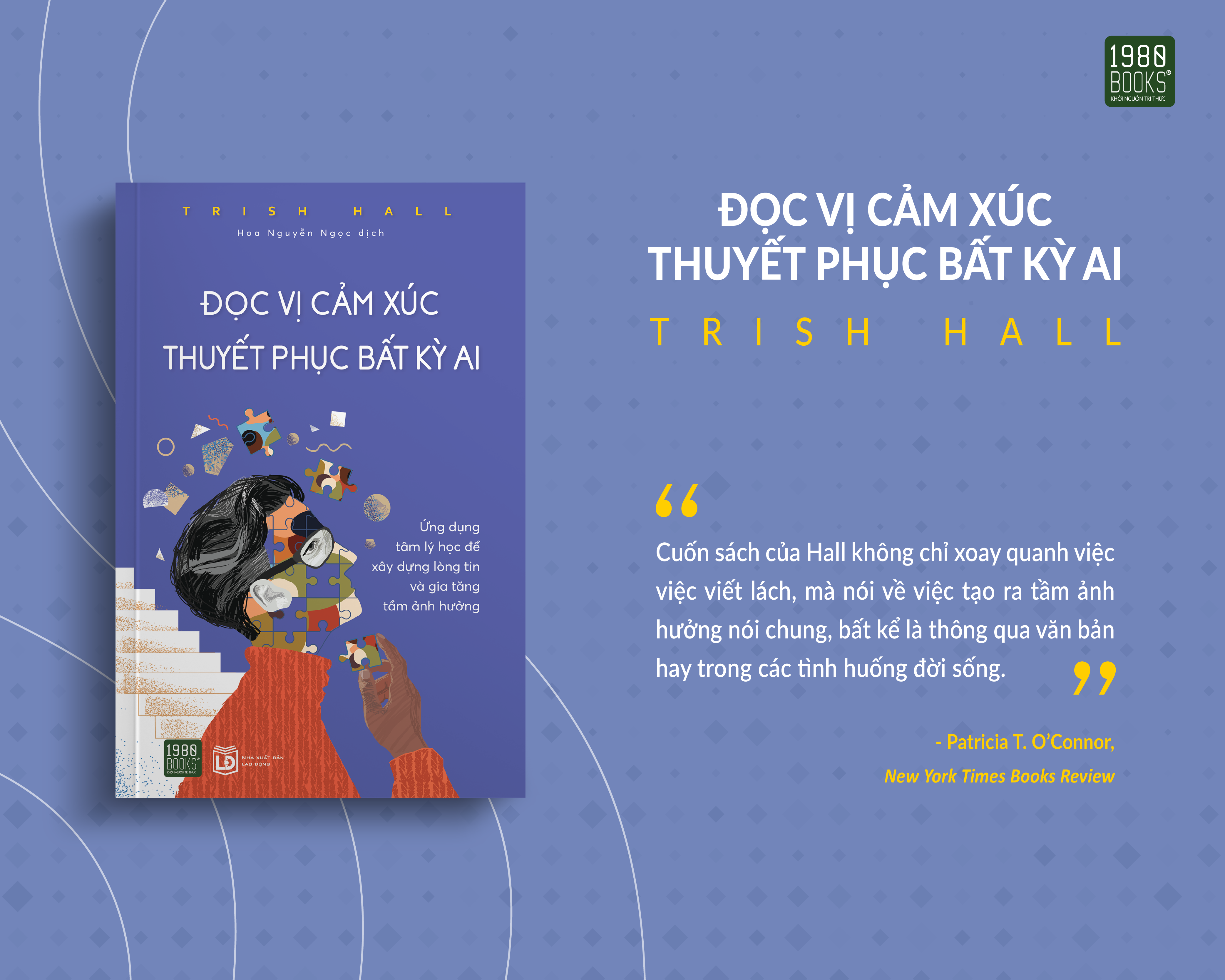 Là người phụ trách mục Góc nhìn cho tờ New York Times, tác giả Trish Hall đã dành nhiều năm đắm chìm trong những cuộc tranh luận và những bài viết thể hiện quan điểm. Trong quá trình đó, cô thường xuyên phải tiếp xúc với những câu văn rối rắm, những biệt ngữ khó hiểu và những bài viết chán ngắt. Dựa trên kinh nghiệm mình, Trish Hall đã viết “Đọc vị cảm xúc, thuyết phục bất kỳ ai” để giúp người đọc giao tiếp một cách hiệu quả và thu phục lòng người.