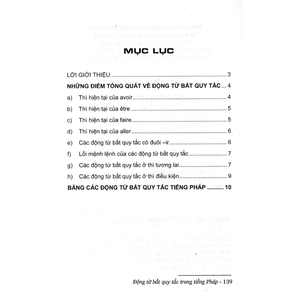 Chúng tôi hy vọng cuốn sách này sẽ giúp các bạn học sinh và học viên sẽ có được kiến thức tốt về động từ bất quy tắc tiếng Pháp và sử dụng chúng thành thạo.