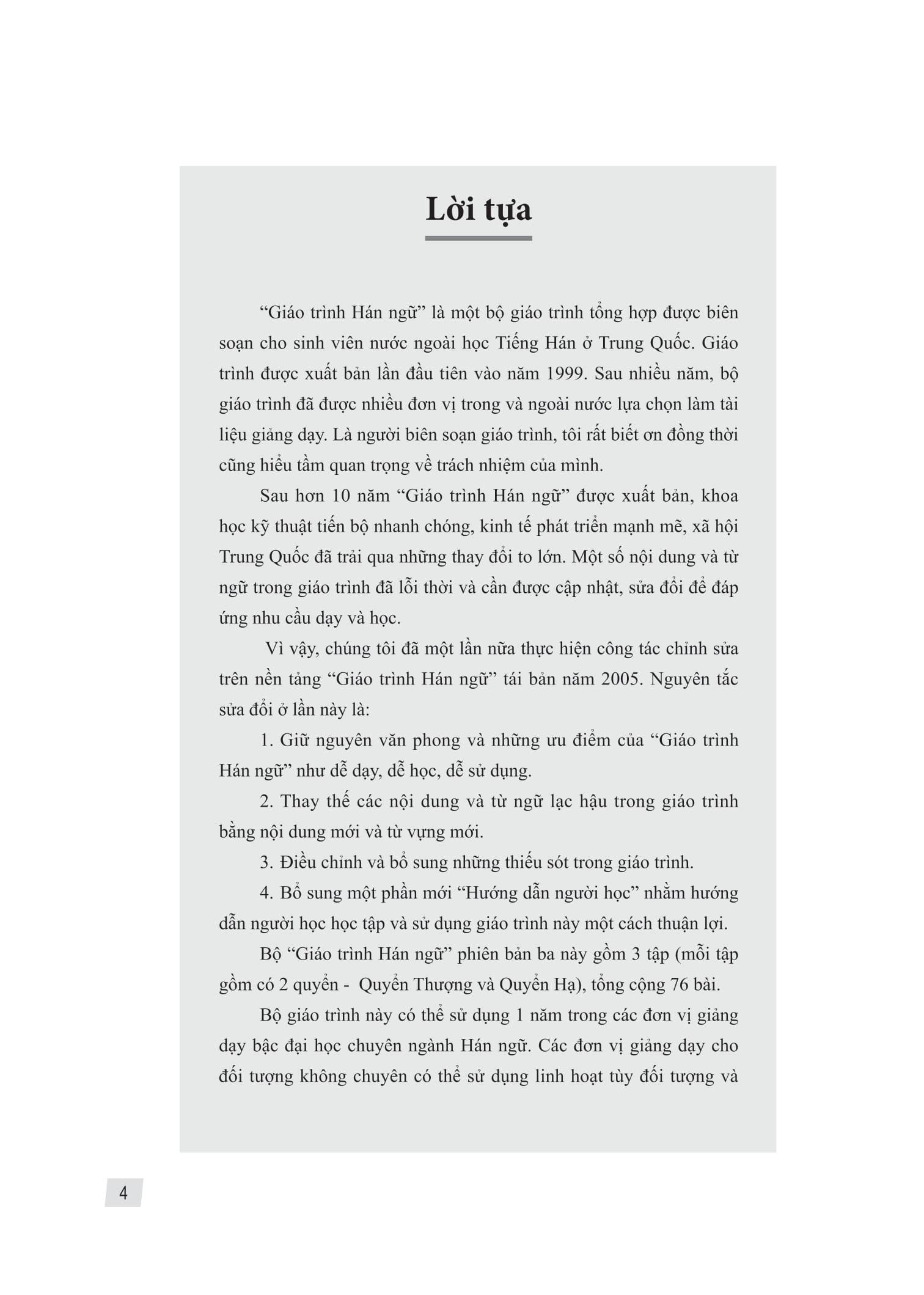 Mua tại TiktokGiáo Trình Hán Ngữ 1 - Tập 1 - Quyển Thượng Các bài học trong “Giáo trình Hán ngữ 1” Tập 1 được thiết kế gồm 5 phần: 1. Bài đọc, 2. Từ mới, 3. Chú thích, 4. Ngữ âm, Ngữ pháp, 5. Luyện tập.