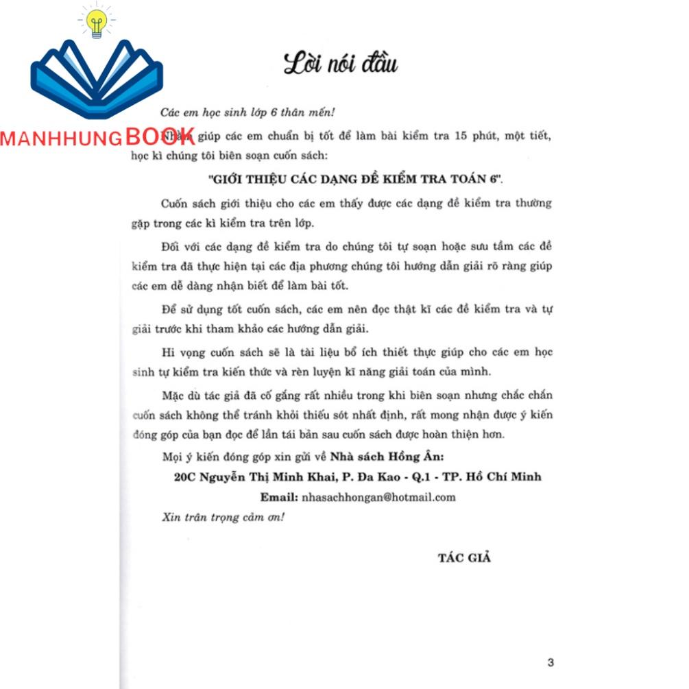 Giới Thiệu Các Dạng Đề Kiểm Tra Toán Lớp 6. Cuốn sách giới thiệu cho các em thấy được các dạng đề kiểm tra thường gặp trong các kì kiểm tra trên lớp.