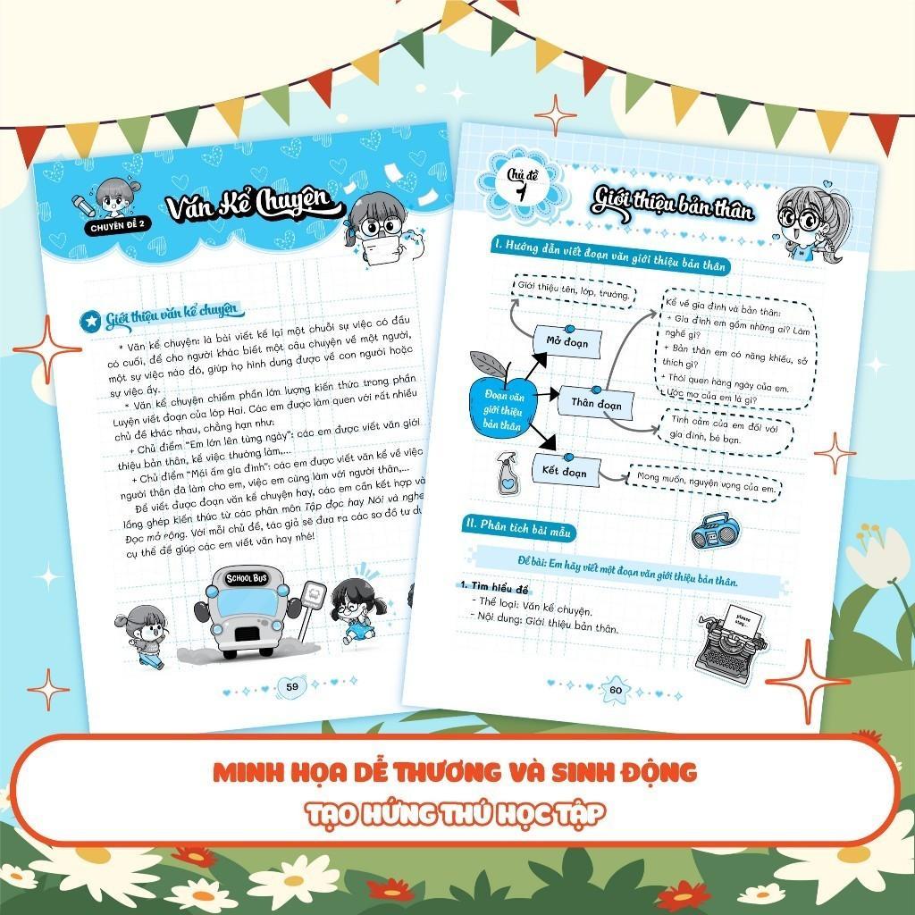 - Sơ đồ tư duy và dàn bài rõ ràng, dễ hiểu: Sách cung cấp sơ đồ tư duy và dàn bài chi tiết, giúp các bạn nhỏ hiểu rõ cấu trúc của một bài văn và cách triển khai ý tưởng một cách có hệ thống.