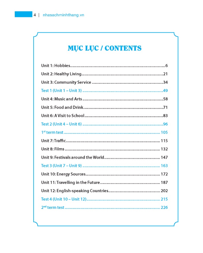 bài tập tiếng anh lớp 7 được biên soạn bám sát chương trình mới của Bộ Giáo dục & Đào tạo với các chủ điểm quen thuộc với học sinh lớp 7 như: MY NEW SCHOOL (Trường học mới của tôi); MY HOME (Gia đình tôi); MY FRIENDS (Các bạn tôi); MY NEIGHBOURHOOD (Hàng xóm của tôi); NATURAL WONDERS OF THE WORLD (Kỳ quan thiên nhiên thế giới); OURTETHOLIDAY (Ngày Tết của chúng tôi); TELEVISION (Truyền hình); SPORTS AND GAMES (Trò chơi và thể thao); CITIES OF THE WORLD (Các thành phố trên thế giới.