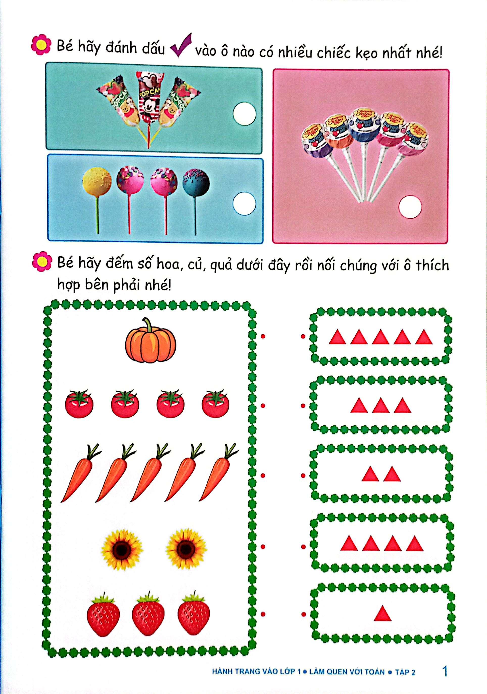 Hành trang vào lớp 1 là bộ sách giúp trẻ chuẩn bị những kiến thức, kỹ năng cơ bản trước khi bước vào lớp 1: tập viết, làm quen với toán. Nội dung sách gồm nhiều trò chơi và bài tập đa dạng: tìm hình giống nhau, tìm bóng chính xác, điền số thích hợp... Các bài tập được thiết kế theo hình thức kết hợp giữa việc quan sát hình ảnh, phân tích và tìm ra kết quả. Hình vẽ minh họa sinh động, ngộ nghĩnh chắc hẳn sẽ khiến các em tăng thêm hứng thú học tập. Lượng kiến thức từ đơn giản đến phức tạp, từ phép tính đến so sánh, đối chiếu, từ luyện nét cơ bản đến viết chữ đẹp, từ làm quen số đếm đến cách xem giờ...