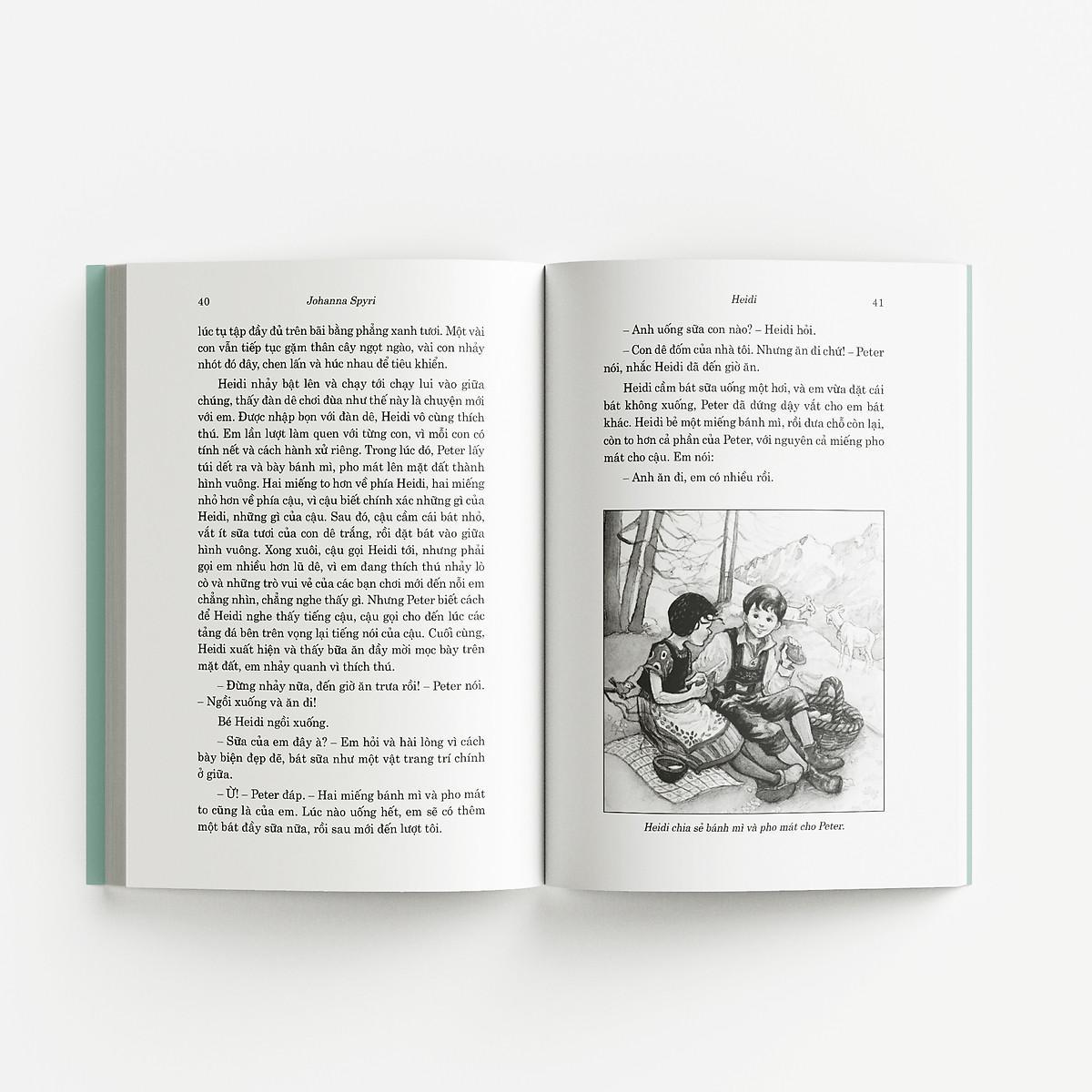 Ra đời cách đây đã 130 năm, Heidi của nữ nhà văn Johanna Spyri - Thụy Sĩ được xem là một tác phẩm kinh điển dành cho thiếu nhi. Với văn phong giản dị, trong sáng, tác phẩm đem đến cho người đọc những bức tranh thiên nhiên thơ mộng, hùng vĩ của đất nước Thụy Sỹ, cùng những điều bí ẩn của tạo vật và tâm hồn con trẻ. Hơn thế nữa, tiểu thuyết này còn là bài ca về tình yêu cuộc sống, về tình cảm ấm áp giữa người và người.