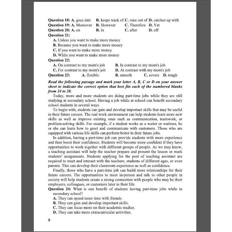 Các chủ điểm ngữ pháp và từ vựng trong mỗi đề luyện tập được tổng hợp chủ yếu từ các bài học của chương trình Tiếng Anh lớp 12 và các lớp dưới. Những chủ đề của các đoạn văn điền từ và các bài đọc trong đề luyện tập cũng liên quan đến những chủ đề của các bài học trong sách giáo khoa.