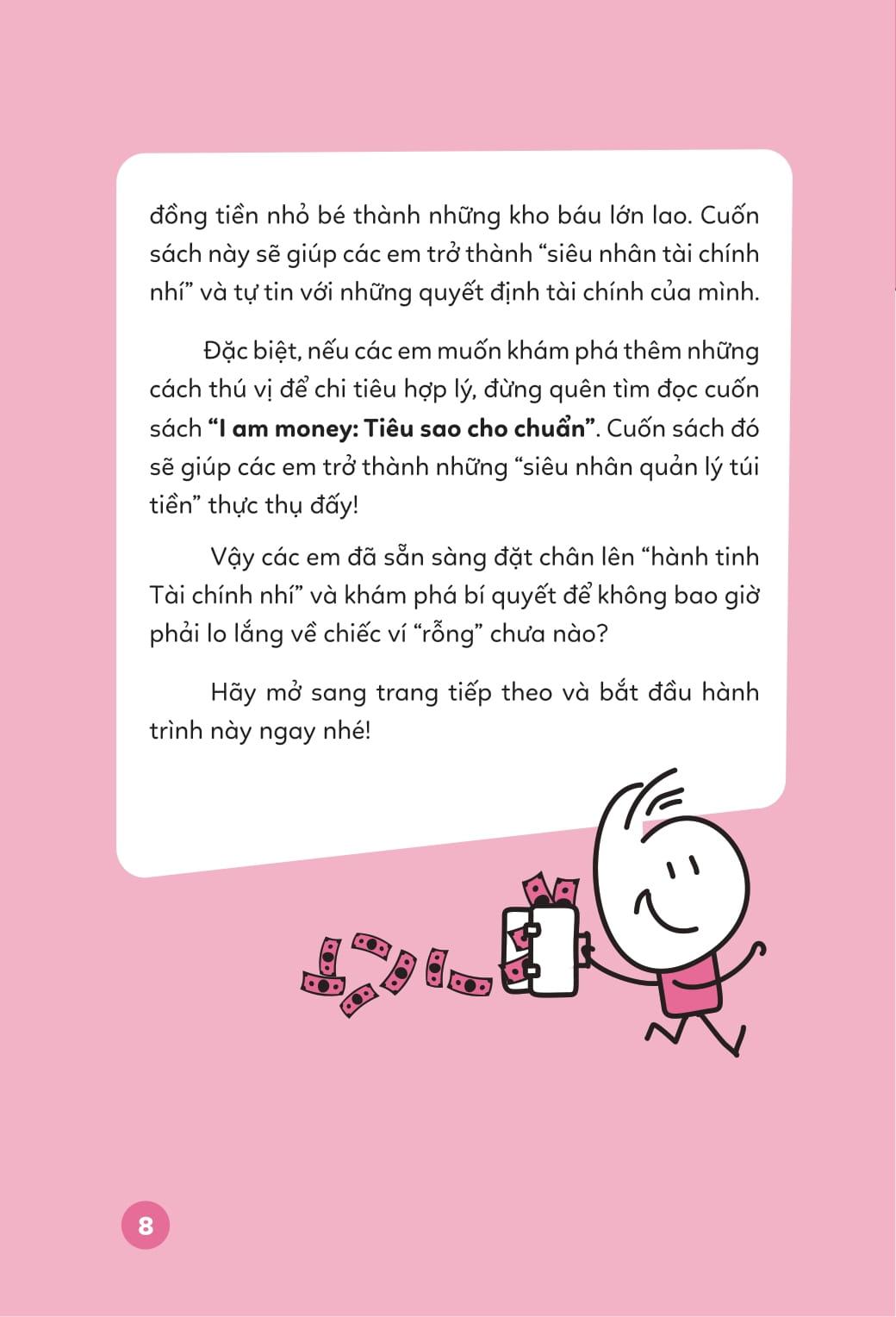 “i am money” là bộ sách tài chính tiên phong dành riêng cho học sinh từ 10 đến 15 tuổi, đây là độ tuổi hình thành nhận thức về tiền bạc, thói quen tiêu dùng và khả năng tự lập. không hàn lâm, không khô khan, bộ sách mở ra một cuộc phiêu lưu kỳ thú trên đại dương tài chính, mỗi cuốn sách giống như một “hòn đảo kiến thức” chứa đựng những bài học quý giá, gần gũi và dễ áp dụng vào đời sống thường ngày.