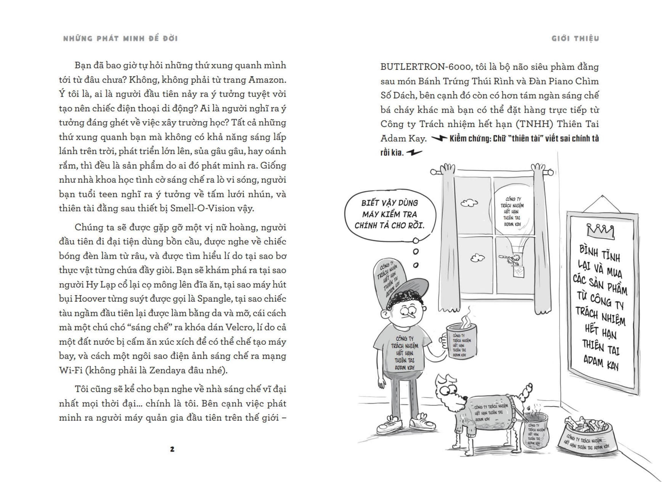 Mua tại TiktokKay’s Incredible Inventions - Những Phát Minh Để Đời Bạn đã bao giờ tự hỏi mọi thứ xung quanh m.ình đến từ đâu không? Ai là người đã nghĩ ra mấy thứ siêu việt như trò chơi điện tử, hoặc… ai là thiên tài đã “phát minh” ra trường học (phiền phức muốn xỉu)? Những Phát Minh Để Đời mang đến câu chuyện lịch sử các phát minh của loài người, ví dụ như: Tại sao người Hy Lạp cổ đại lại lau mông bằng… đĩa ăn? Chuyện “giải quyết nỗi buồn” của nữ hoàng dẫn đến… chiếc bồn cầu đầu tiên như thế nào? Làm sao một chú chó lại vô tình tạo ra… khóa dán velcro? Nào, hãy cùng khám phá 48.762.851.208 sự thật kì quặc (ước lượng thôi nhá!) về phát minh, từ NGỚ NGẨN đến KINH TỞM và thậm chí là NGUY HIỂM RỢN TÓC GÁY trong cuốn sách mới nhất của tác giả Adam Kay nhé!