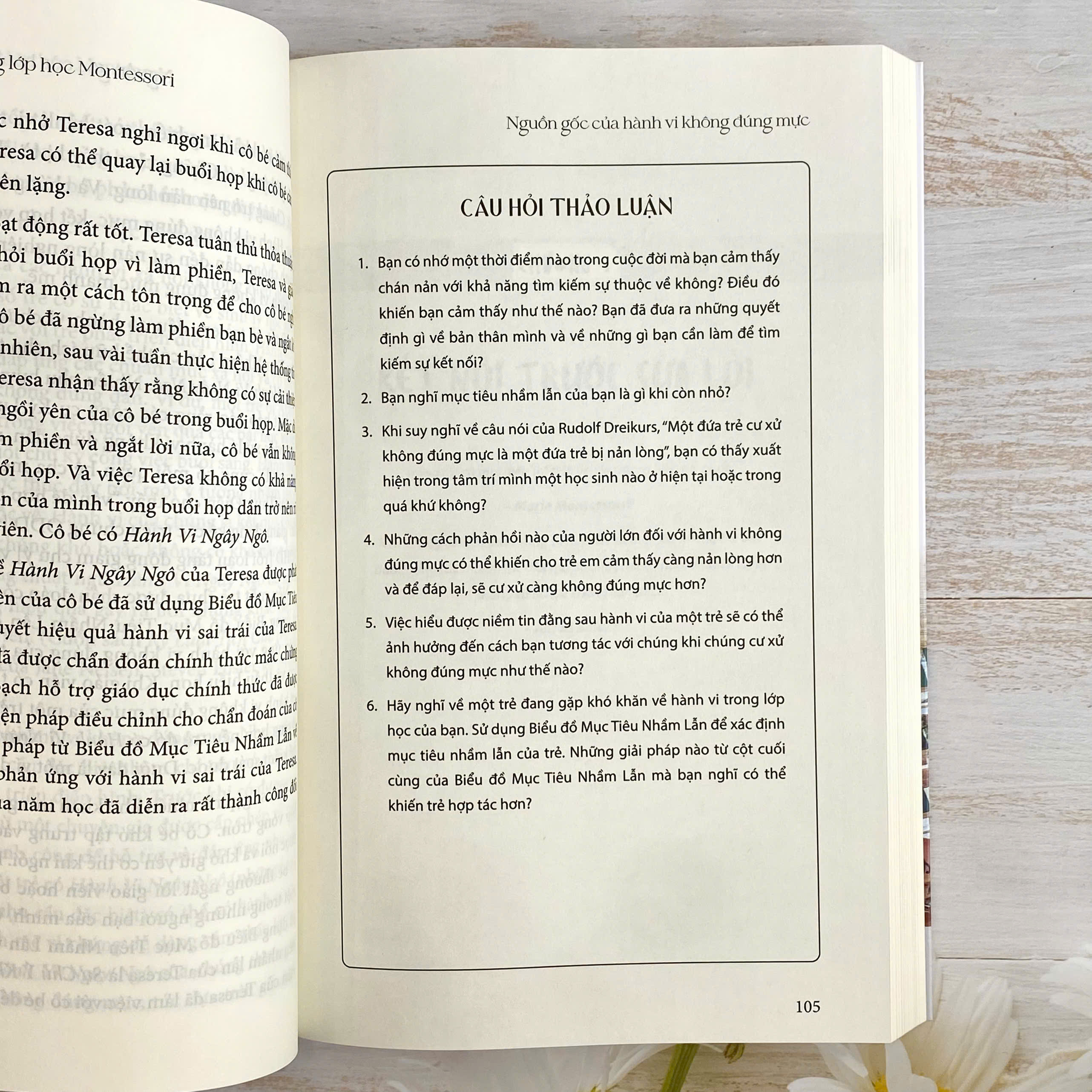 Điều đặc biệt của cuốn sách là những câu chuyện thật, những tình huống cụ thể từ lớp học Montessori khắp nơi trên thế giới. Ở đó, bạn sẽ bắt gặp những khoảnh khắc rất quen thuộc: khi một học sinh thách thức uy tín giáo viên, khi trẻ bất hợp tác, hay khi cả lớp dậy sóng vì mâu thuẫn nhỏ. Và thay vì các biện pháp cưỡng ép, sách đưa ra những cách tiếp cận nhẹ nhàng nhưng đầy sức mạnh – nơi sự tử tế đi cùng sự kiên định.