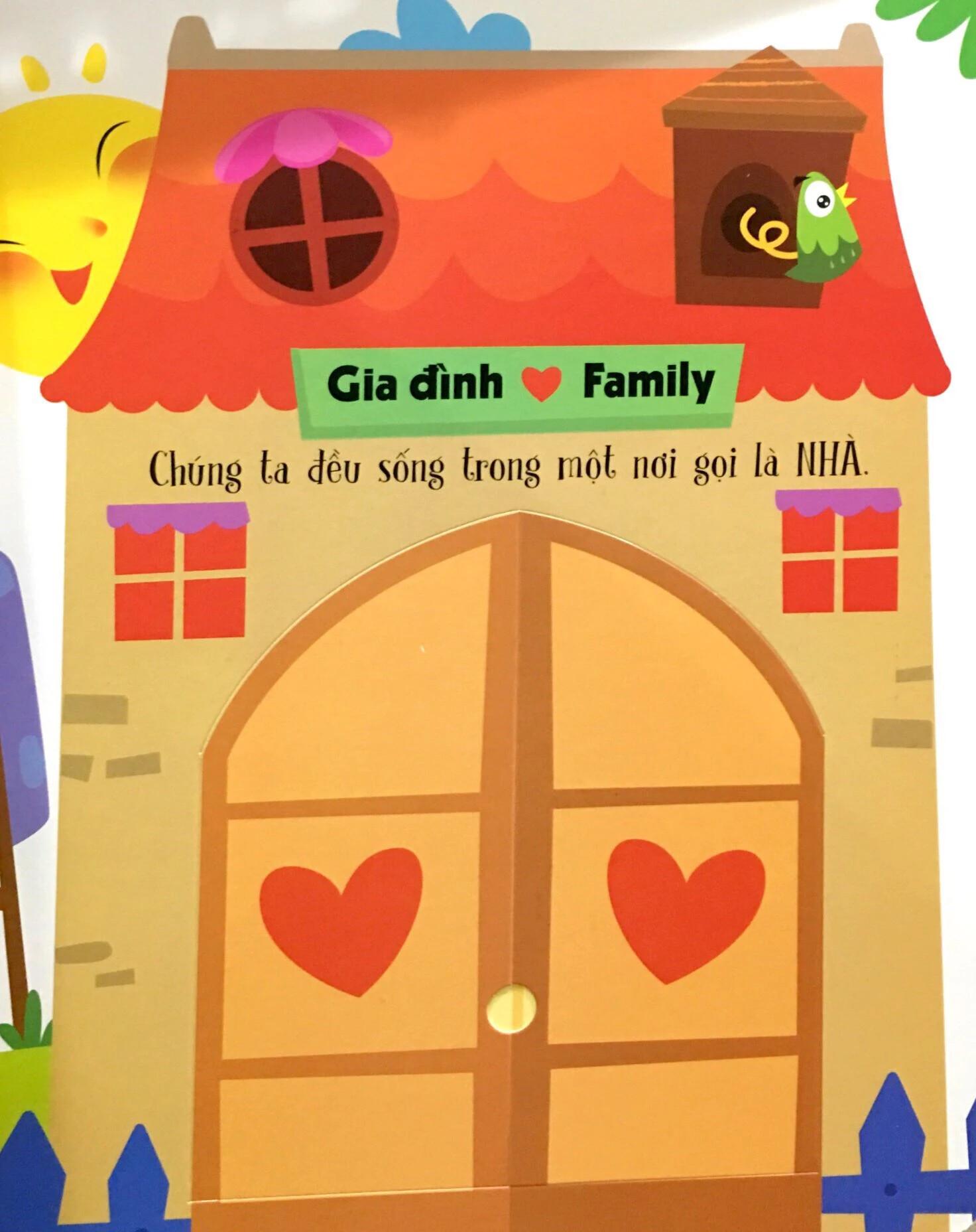 Cuốn sách lật mở Lift-the-flap – Lật mở khám phá thế giới – 100 từ mới đầu tiên về thế giới quanh em là cuốn sách song ngữ Việt – Anh tổng hợp 100 từ vựng cơ bản về các chủ đề: Gia đình, hình dạng, màu sắc, cơ thể người, thời gian, thiên nhiên,…dành cho bé 1-10 tuổi.Điểm đặc biệt của cuốn sách là tất cả các từ vựng đều được hình ảnh hóa qua bức tranh đầy màu sắc và xuất hiện đầy bất ngờ qua từng miếng lật mở với đủ hình dạng khác nhau. Cuốn sách lật mở là hình thức sách tranh mới mẻ với những ưu điểm đặc biệt giúp bé ghi nhớ từ mới nhanh chóng, đồng thời giúp tăng thêm khả năng tưởng tượng của bé qua các hình ảnh chân thực của từng miếng lật mở 2D.