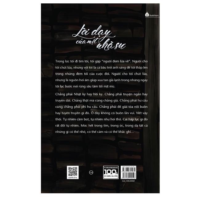 “Lời dạy của một nhà sư”, cuốn sách thể hiện trăn trở của một người trẻ về cuộc sống, cuộc đời, giá trị con người. Từ một người trẻ không có mục đích sống rõ ràng, bị trầm cảm, tác giả đã thay đổi khi gặp được lời dạy của một nhà sư.
