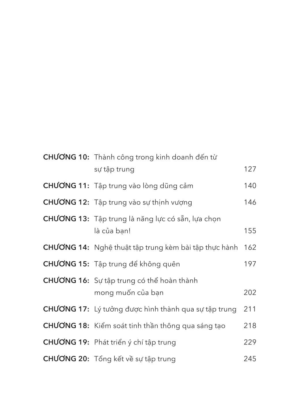 Cuốn sách bao gồm 20 chương ngắn gọn, tương ứng với 20 bài học thực hành đơn giản nhưng sâu sắc sẽ chỉ dẫn bạn cách loại bỏ sự phân tâm, xây dựng ý chí và biến sự tập trung thành một thói quen bền vững, từ đó khai thác triệt để tiềm năng và chạm tới những mục tiêu không tưởng!