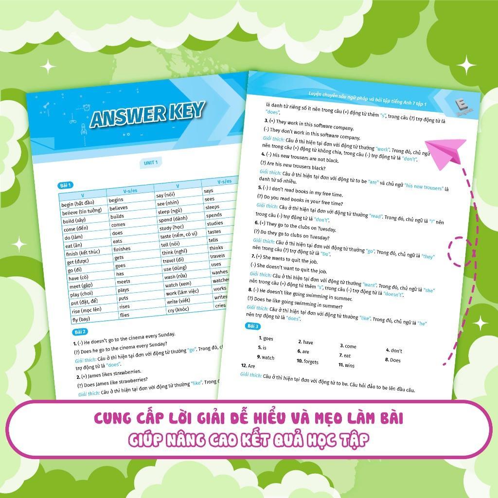 Nội dung bám sát khung chương trình giáo dục phổ thông mới lớp 7 của Bộ Giáo dục và Đào tạo giúp các em nắm vững kiến thức đã học trên lớp cũng như ôn luyện thêm các bài tập nâng cao, hỗ trợ quá trình tự học tiếng Anh hiệu quả.