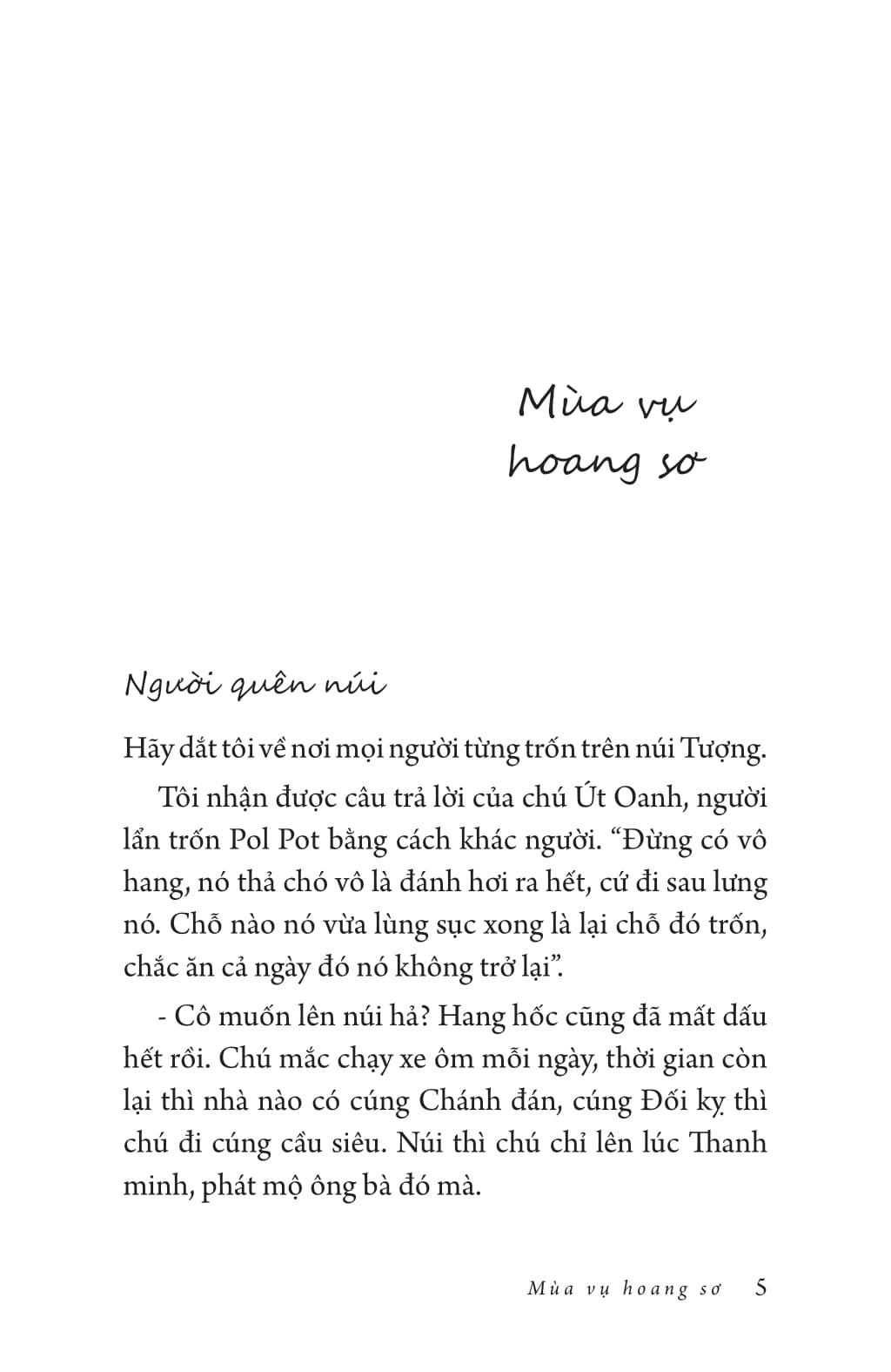 Tập tản văn Mùa hoa trên những lối sông là những cảm xúc da diết của chị về miền Tây Nam bộ. Nơi đó có núi Ba Chúc, có cuộc mưu sinh nhọc nhằn, có tình người chân chất, có con nước uốn lượn - “Tôi thèm những con nước chảy về từ ký ức. Có nhiều lúc ngồi viết, tôi muốn dẫn một dòng nước chạy ngang bàn viết của m.ình. Một dòng nước có g.ấp khúc, có uốn lượn để tôi nghe được tiếng nước đang trăn trở đâu đó bên tai. Tôi thèm đến độ ngủ chiêm bao thấy được những trưa ngồi trên cầu thang nhà lượm những miếng lưới rách để giăng chơi mà gỡ được những con cá linh vảy bạc nhảy soi sói. Giấc mơ xa xỉ nhất trong đời”. Nơi đó cũng rực rỡ những mùa hoa – “Từ bông so đũa trắng ngần cho tới bông s.úng mang sắc hồng ngọt ngào, bông điên điển vàng ươm, bông sầu đâu xanh biếc hoặc bông lục bình tím hồng lãng mạn đều được thấm đẫm vị sông nước, vị quê và hòa quyện với nước mắm cá linh non”.