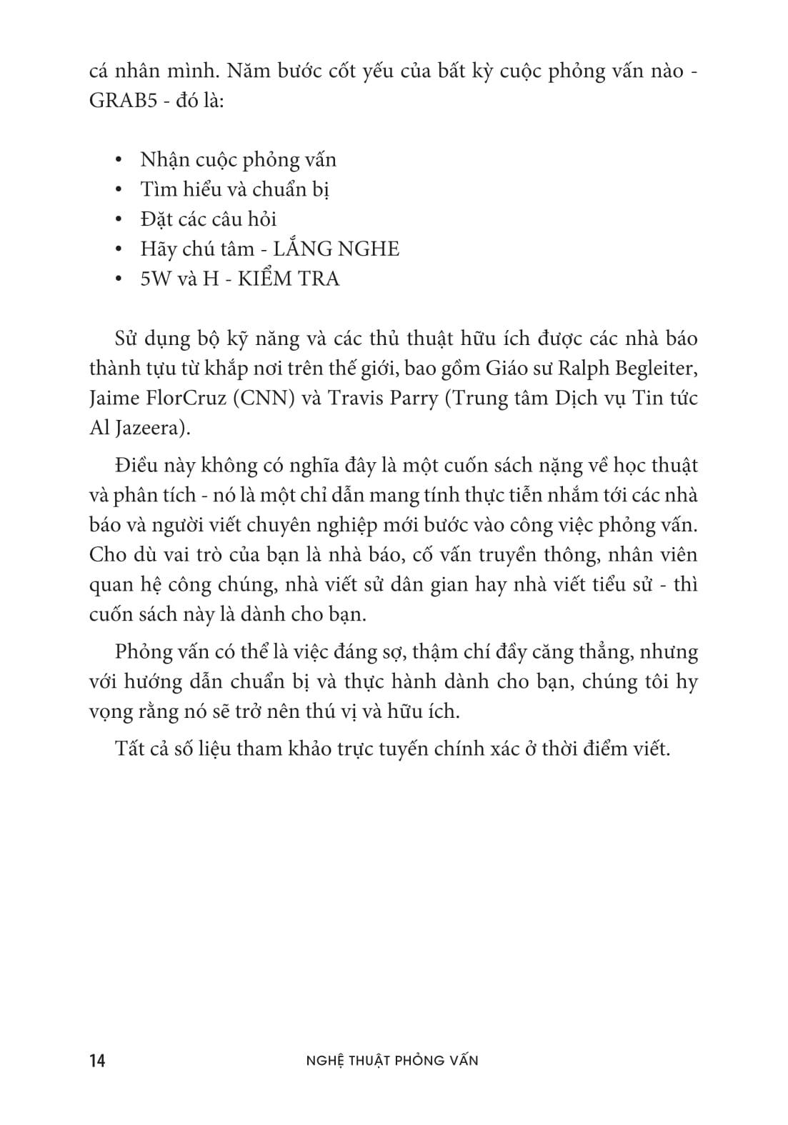 Đây thực sự là một bộ công cụ đầy đủ cho học viên và nhà báo chuyên nghiệp trau dồi các kỹ năng cần thiết để trở nên sắc sảo trong các cuộc phỏng vấn; một nguồn tài liệu lý tưởng và quan trọng cho những người đang học tập, nghiên cứu hoặc đang hoạt động trong lĩnh vực báo chí và PR, viết, sản xuất nội dung chuyên nghiệp,…