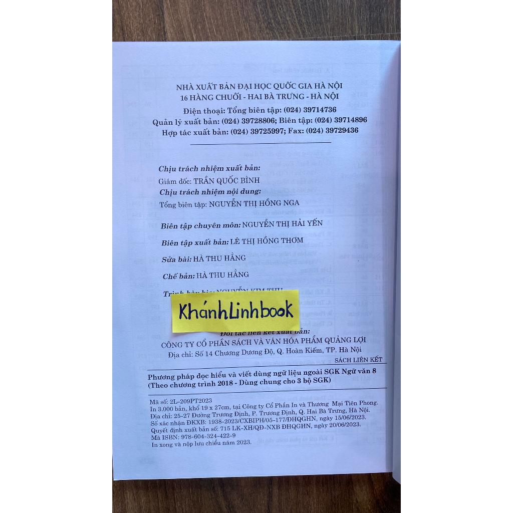NỘI DUNG SÁCH Để đáp ứng yêu cầu đổi mới cách đánh giá học sinh trong môn Ngữ văn cấp THCS – CT 2018 (tránh dùng lại các văn bản đã học trong sách giáo khoa làm ngữ liệu xây dựng các đề kiểm tra đọc hiểu và viết để đánh giá chính xác năng lực học sinh, khắc phục tình trạng học sinh chỉ học thuộc bài hoặc sao chép nội dung tài liệu có sẵn; Khuyến khích việc xây dựng và sử dụng các đề mở trong kiểm tra, đánh giá để phát huy cao nhất khả năng sáng tạo của học sinh), chúng tôi sưu tầm và thiết kế bộ sách:  Ngữ văn 8  NGỮ LIỆU ĐỌC HIỂU MỞ RỘNG  (Theo CT 2018 - Dùng cho 3 bộ SGK)  Bộ sách bám sát yêu cầu cần đạt môn Ngữ văn 8 - chương trình giáo dục phổ thông 2018 và CV 3175 hướng dẫn về đổi mới dạy học và kiểm tra, đánh giá ngữ văn của Bộ Giáo dục và đào tạo (21/7/2022) nhằm cung cấp cho nguồn ngữ liệu mở rộng theo thể loại đã được tuyển chọn kỹ càng, đảm bảo đặc trưng thể loại, có nguồn gốc tin cậy để: