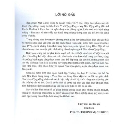 "Nhân kỷ niệm 110 năm thành lập Trường Đại học Y Hà Nội (1902 – 2012), Viện Đào tạo Răng Hàm Mặt đã tổ chức biên soạn và cho ra mắt bộ sách giáo khoa dành cho sinh viên chuyên khoa Răng Hàm Mặt. Trong bộ sách, các tác giả biên soạn theo phương châm: kiến thức cơ bản, hệ thống, nội dung chính xác, khoa học, cập nhật các tiến bộ khoa học, kỹ thuật hiện đại và thực tiễn Việt Nam. Nội dung của bộ sách được