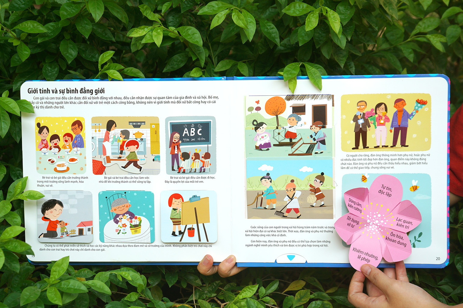 Cuốn sách còn có nhiều hình minh họa ngộ nghĩnh, thiết thực, được thiết kế đầy tinh tế, tỉ mỉ bằng các miếng LẬT - MỞ - KÉO - ĐẨY, giúp các bé vừa chơi vừa học kiến thức.