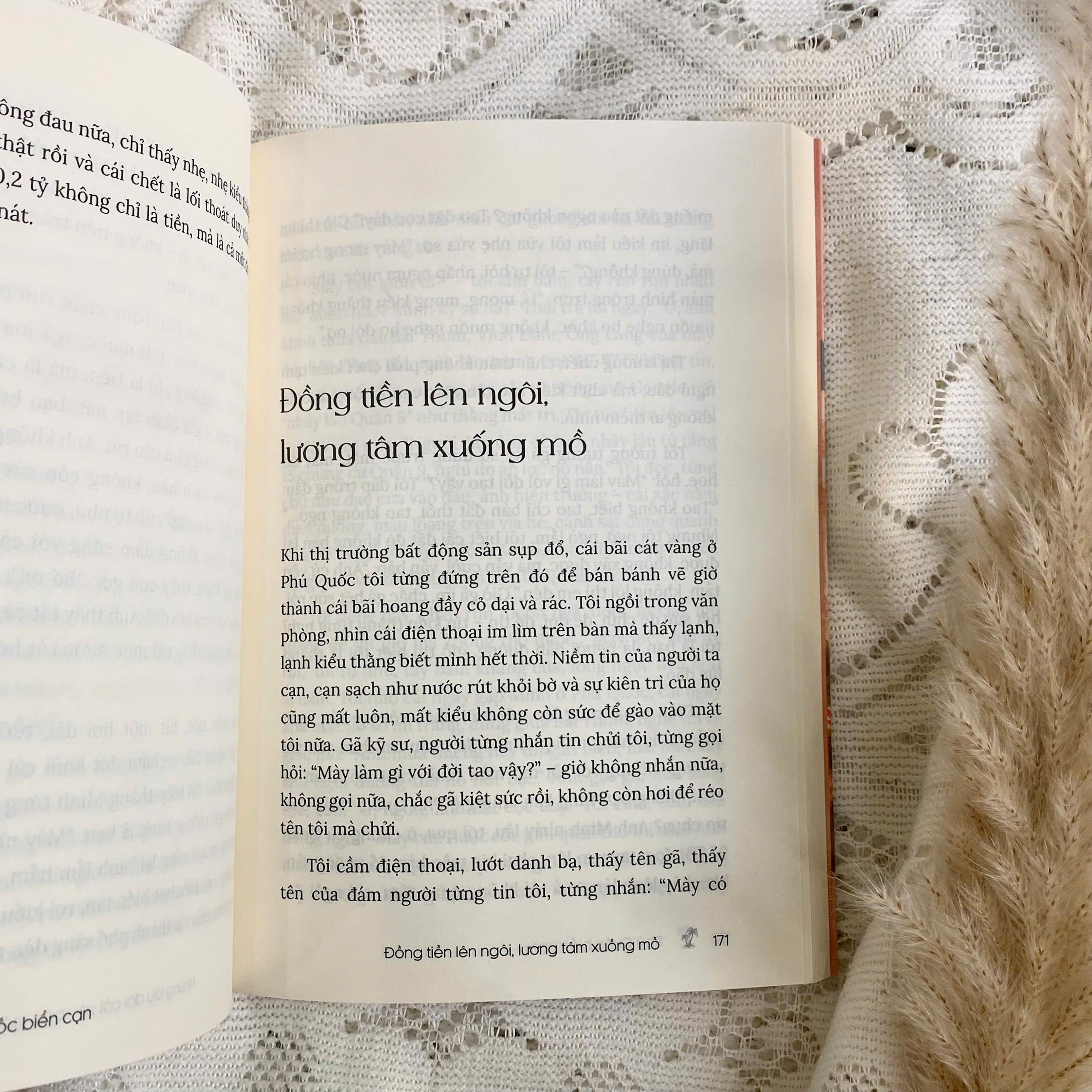 Phú Quốc Biển Cạn - Thiên Đường Hay Chỉ Là Lời Hứa Suông “Phú Quốc biển cạn” kể về hành trình của một chàng trai trẻ, từ những ngày còn bỡ ngỡ bước chân vào thế giới bất động sản, một thế giới đầy khẩu hiệu màu mè, những buổi họp dồn dập kỹ năng “chốt deal” và áp lực mang tên “doanh số”. Từ những hoang mang ban đầu, anh dần vươn lên, trở thành biểu tượng của thành công: một chuyên gia bất động sản sắc sảo, một kẻ dẫn dắt giấc mơ nhà cửa của bao người bằng lời lẽ thuyết phục và những dự án hào nhoáng. Anh có tất cả: tiền bạc, tình yêu, địa vị. Thế nhưng, sau những bản hợp đồng là những đêm mất ngủ. Sau những lời chúc mừng là một vùng trống khó gọi tên. Để rồi đến một ngày, khi những “giấc mơ” anh vẽ ra trở thành tảng đá đè nghiến, hủy hoại cuộc đời người khác, tất cả vỡ vụn. Niềm tin sụp đổ. Bản ngã tan hoang. Anh lên đường. Bỏ lại mọi thứ. Chỉ để thoát ra khỏi chính con người cũ của m.ình. Trên chiếc campervan, anh rong ruổi khắp mọi nơi. Không kế hoạch. Không đích đến. Chỉ có biển, núi, rừng, những buổi trưa nơi hoang vắng, và những giấc ngủ chập chờn giữa đêm sương. Rồi quá khứ tìm đến. Một cuộc gặp. Một lời đề nghị quay về với thế giới cũ, buộc anh phải lựa chọn. “Phú Quốc biển cạn” là lời nói của một linh hồn lạc lối, là tiếng thở dài vang lên giữa đêm khuya khi chẳng còn ai để đối thoại. Không đơn thuần là câu chuyện về bất động sản, mà còn là về hành trình đi tìm ý nghĩa đích thực của đời người. Khi thành công không mang đến sự bình yên, tình yêu không thể chắp vá một tâm hồn vỡ vụn. Khi ta hiểu ra: có những điều tưởng chừng là tất cả, cuối cùng lại chẳng là gì. Cuốn sách như một làn gió biển lùa qua lồng ngực rỗng tênh. Ở đó, có những ngày nằm võng trên bãi biển hoang vu, ăn bữa mì gói mà thấy đời đáng sống. Có những đêm thức trắng, đối diện với chính m.ình trong một chiếc xe chật hẹp nhưng đủ đầy tự do. Và có cả những lời thì thầm không bao giờ nói ra, với người cũ, với quá khứ, với một bản thể từng quá ngây thơ tin rằng hạnh phúc đến từ những thứ ta mua được.