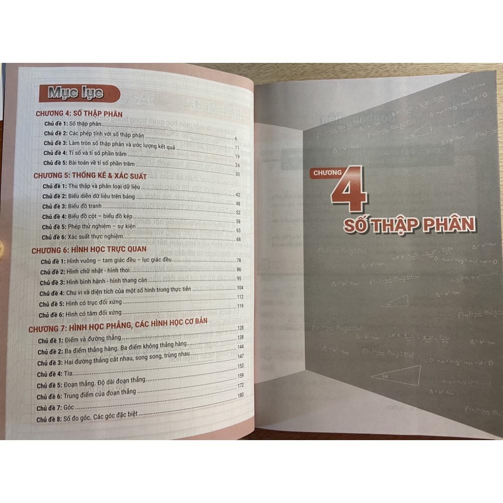 - Tập 2 gồm 4 chương với 25 chủ đề bám sát chương trình mới của Bộ Giáo dục và Đào tạo như: Số thập phân, Thống kê & Xác suất, Hình học trực quan, Hình học phẳng,