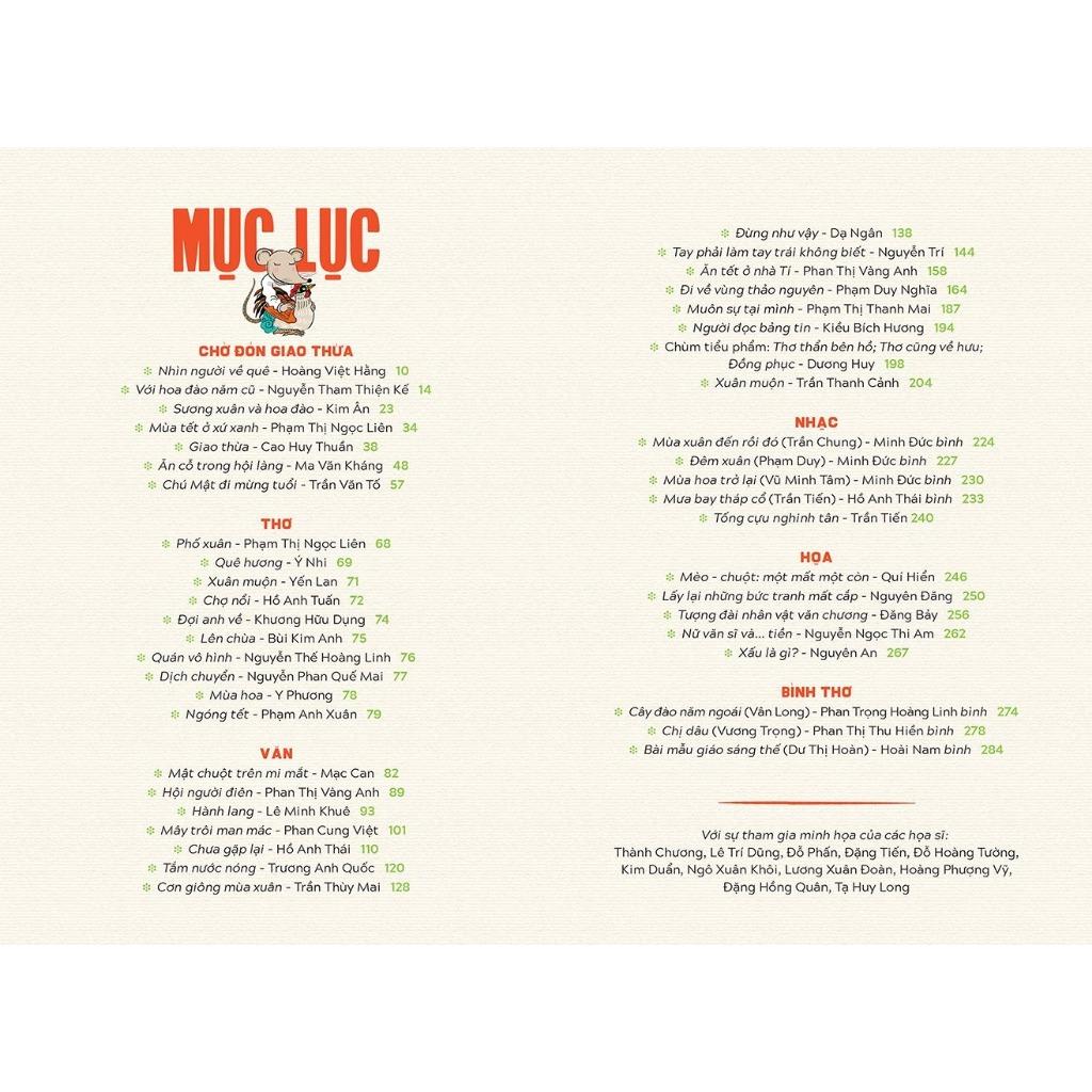 Ngoài sự góp mặt của các tác giả, họa sĩ tên tuổi như Cao Huy Thuần, Hồ Anh Thái, Phan Thị Vàng Anh, Thành Chương, Lê Trí Dũng, Đỗ Hoàng Tường… Sách Tết 2020 có sự tham gia của một số cây bút mới từ nhiều vùng miền đất nước. Nhờ đó, cộng thêm với kinh nghiệm của những người làm sách cũng như sự góp ý của độc giả cho ấn bản đầu tiên, Sách Tết 2020 đã trở nên phong phú, đa dạng và cũng chất lượng hơn. Sách mở đầu với phần Chờ đón giao thừa. Ở đấy, ta bắt gặp những dáng người tất tả về quê ăn tết trong cái lạnh se se của miền Bắc; ta sống lại những truyền thống xa xưa với sắc đào chấm phá trong sương, với gái làng đào quần lụa xòa kín gót, áo nâu thắt eo, tung tẩy đôi sảo tre ra bãi sông kĩu kịt vớt váng phù sa, với những khách văn chương đất Bắc, và với những cảnh quê nghèo thủa nào xa xôi lắm. Nhịp sách lại nối dài với Thơ và Văn, với những cơn giông mùa xuân tưới tắm tâm hồn trong những xúc cảm. Ngày xuân ấy có kẻ bỏ phồn hoa, bỏ phố thị lên miền Tây Bắc để được trưa uống rượu, sáng ra nghe con họa mi trong trẻo hót giữa rừng. Không chỉ gói gọn ở những áng thơ, văn, điểm mới của sách tết năm nay là phần bình Nhạc, Họa và Thơ với những bài cảm nhận sâu lắng và độc đáo về các bản nhạc, các họa phẩm, các bài thơ nổi tiếng về chủ đề mùa xuân và cuộc sống để bạn đọc có thêm những giây phút thú vị. Và cứ như thế, trong giỏ quà tết, ngoài những bánh, những rượu thì xuất hiện thêm một món quà tinh thần là quyển Sách Tết nho nhỏ. Trên bàn trà, ngoài mứt tết, hạt dưa, còn có sự góp mặt khiêm nhường của Sách Tết. Bên cạnh thú du xuân, người ta còn có thêm cái thú tao nhã: đọc – ngẫm Sách Tết. Người già đọc để hoài nhớ tết xưa; người trẻ đọc để trân quý tết nay.
