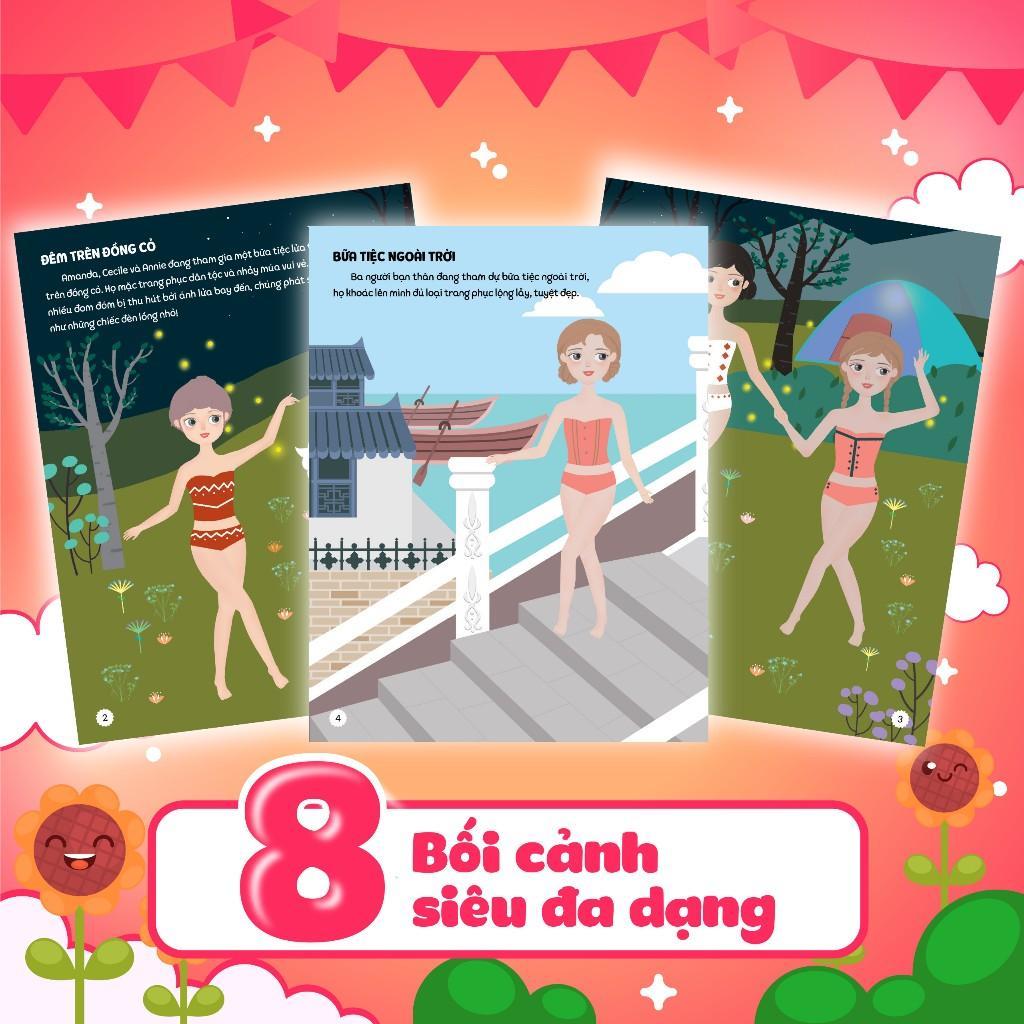 • 8 Bối cảnh đa dạng theo từng chủ đề cùng với hơn 24 nhân vật, 100 stickers quần áo và phụ kiện cho con được hóa thân thành nhà tạo mẫu thời trang, thỏa sức sáng tạo, giúp bé tránh xa điện thoại, và trò chơi điện tử