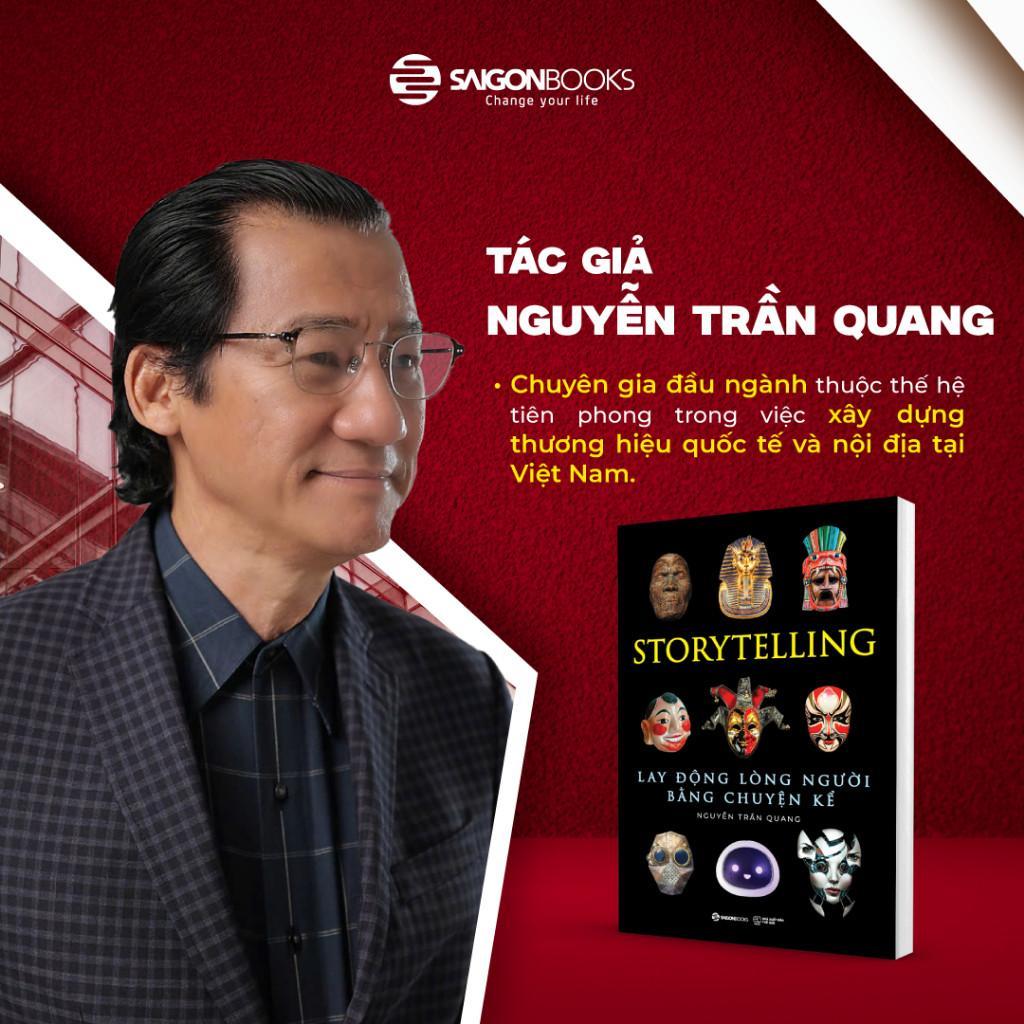 Tác giả Nguyễn Trần Quang đã có hơn 30 năm làm việc ở vị trí lãnh đạo và đồng hành xây dựng chiến lược cho những thương hiệu lớn từ nước ngoài đến sân nhà Việt Nam như: Hennessy, Johnnie Walker, Kodak, Trung Nguyên, Bia Sài Gòn, Tân Hiệp Phát, Liberty Central Hotel… Vì thế, chẳng điêu ngoa khi nói ông là một trong những người đặc biệt nhận ra sức mạnh vượt thời gian và không gian của Storytelling. Với kinh nghiệm dày dặn như thế, từng câu chữ ông viết trong “Storytelling - Lay động lòng người bằng chuyện kể” vô cùng chân thành, mộc mạc đậm chất bản sắc văn hoá Việt; nhưng lại đan cài những thông điệp và kiến thức chuyên môn vừa thú vị, vừa thực tiễn lại vừa ấn tượng.