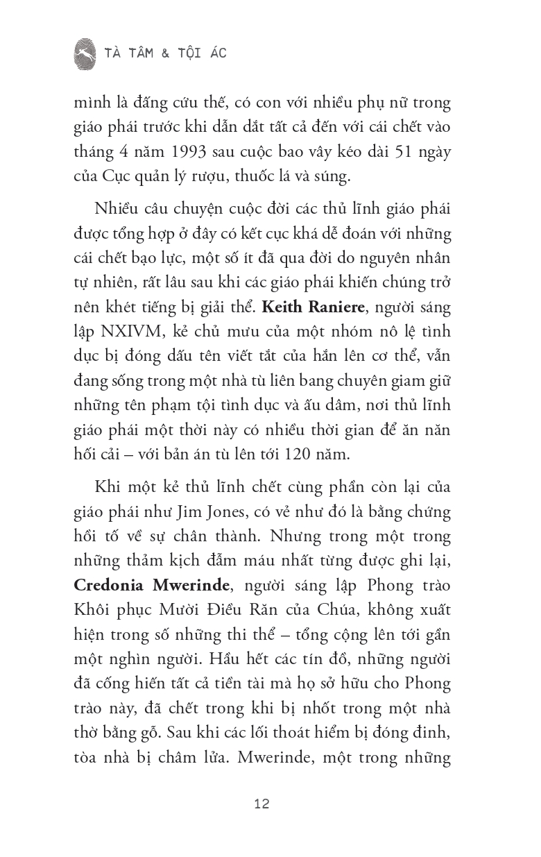 Cuốn sách đồng thời cũng là lời cảnh báo về mặt tối của lòng tin, về cách các thủ lĩnh tà đạo khéo léo bóp méo nhu cầu được thuộc về thành vũ khí kiểm soát tập thể. Đằng sau mỗi vụ án là một sự cộng sinh bệnh hoạn giữa quyền lực và tín ngưỡng, nơi danh nghĩa tâm linh bị lợi dụng để che đậy dục vọng và ác tâm.