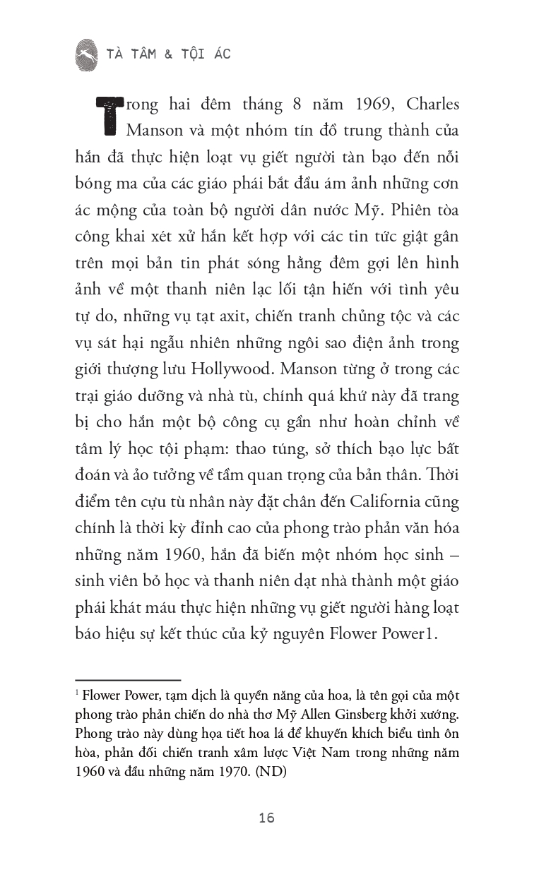 Với văn phong trực diện, giàu dữ liệu và phân tích sắc lạnh, Tà Tâm & Tội Ác không chỉ phù hợp với độc giả yêu thích điều tra, tội phạm, mà còn là tài liệu tham khảo thiết yếu cho những ai quan tâm đến tâm lý học tội phạm, hành vi cực đoan và cơ chế của thao túng xã hội.