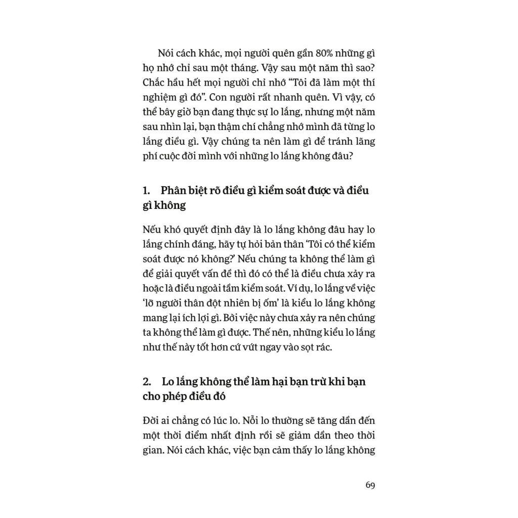 Cuốn sách muốn nói với những người trưởng thành luôn do dự và dao động vì có quá nhiều suy nghĩ. Tùy thuộc vào cách bạn trải qua tuổi 30, cuộc sống của bạn sau tuổi 40 sẽ rất khác. Có rất nhiều quyết định quan trọng ở độ tuổi 30 sẽ ảnh hưởng đến cuộc sống tương lai của bạn, vì vậy bạn không còn cách nào khác ngoài việc phải cẩn thận với những lựa chọn của mình. Nhưng vấn đề là càng nghĩ nhiều thì suy nghĩ tiêu cực càng nhiều hơn suy nghĩ tích cực, và một khi đã bắt đầu suy nghĩ tiêu cực thì bạn không biết làm cách nào để dừng lại. Cuốn sách chứa 47 lời khuyên cuộc sống dành cho bạn đọc. Là thông điệp dành cho những người muốn sống một đời không hối tiếc.