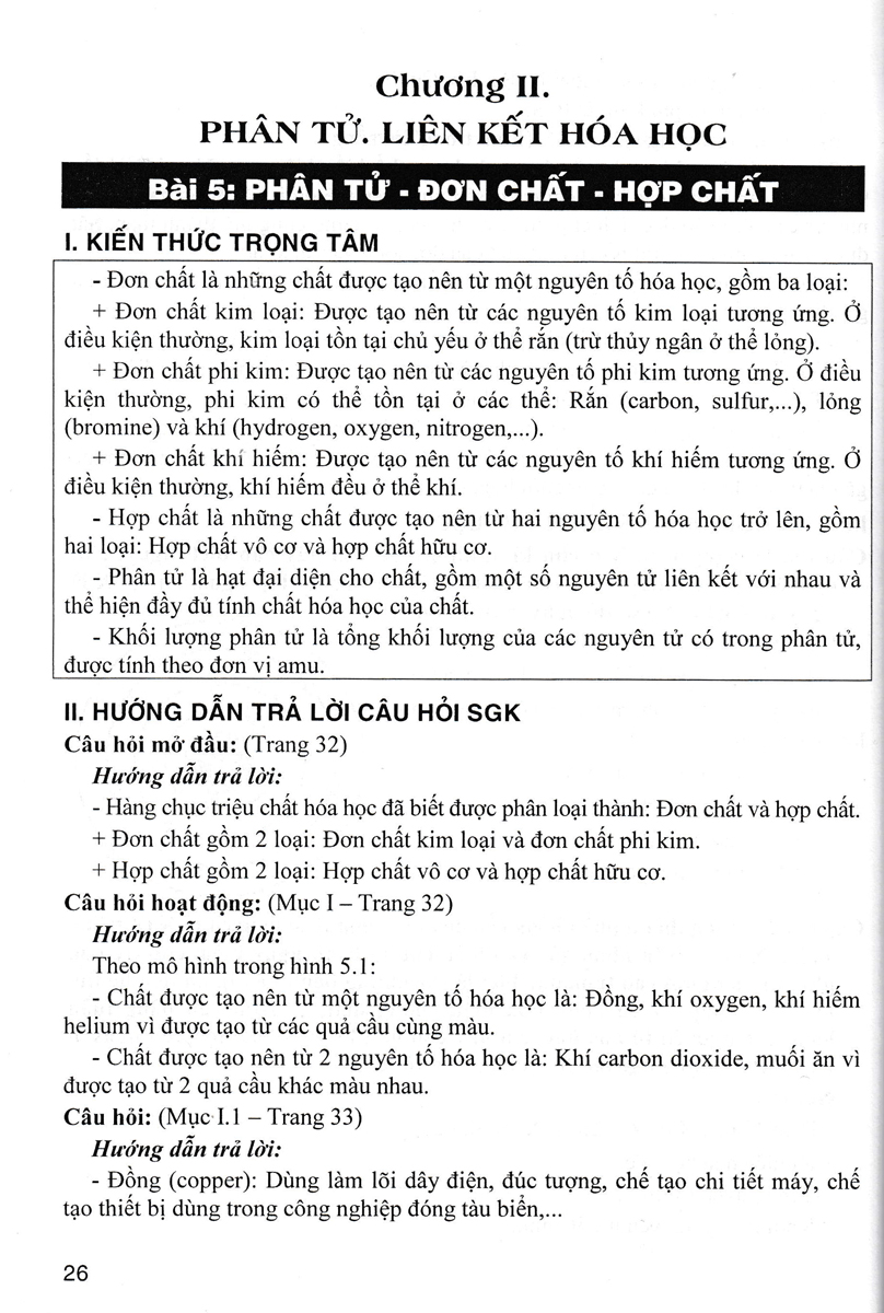 Nội dung của cuốn sách sẽ hệ thống lại kiến thức trọng tâm để học sinh cần ghi nhớ những kiến thức cốt lõi của từng bài học, tiếp đó sẽ hướng dẫn hoặc gợi ý các em trả lời các câu hỏi của bài học, câu hỏi ở phần hoạt động hay câu hỏi trong bài thực hành,... Ngoài ra để phát huy khả năng tư duy, sáng tạo của học sinh, nhóm tác giả đưa thêm các câu hỏi phát triển năng lực nhằm kết nối kiến thức đã được học với thực tiễn trong đời sống, đặc biệt là bồi dưỡng tính hứng thú học tập cho học sinh.