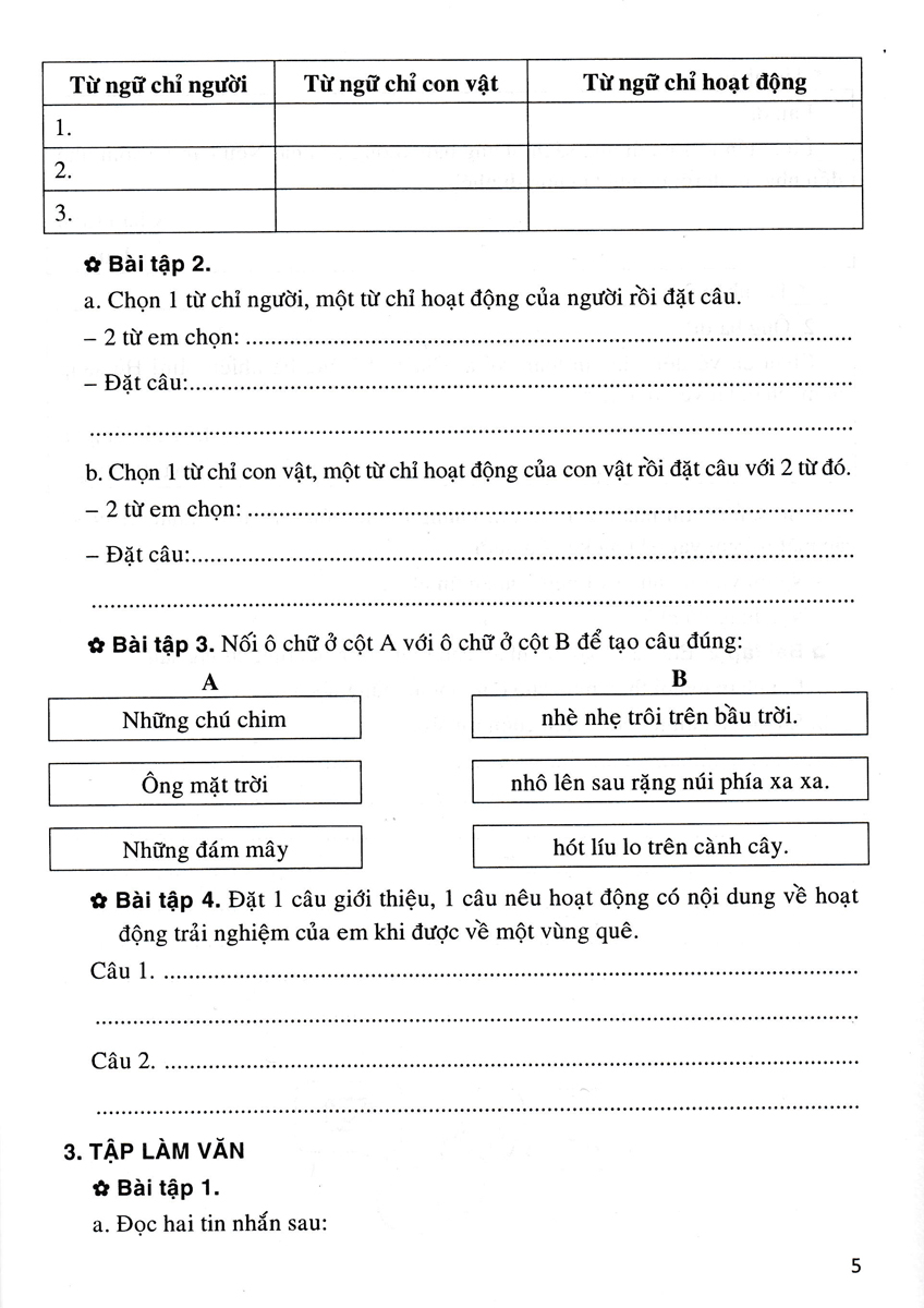 Bài tập cuối tuần 2 Tiếng Việt 3 KNTTVCS