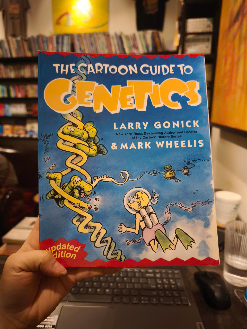 Bạn đã bao giờ tự hỏi: Liệu gen ghép có giống với quần Levis được vá không? Watson và Crick? Họ không phải là một đội thám tử người Anh sao? Giới tính thực vật? Họ có thể làm được điều đó không? Đột biến di truyền có phải là tên của một trong những ban nhạc heavy metal không? Asparagine? Trong bốn nhóm thực phẩm thì nhóm đó nằm trong nhóm nào? Vậy thì bạn cần The Cartoon Guide to Genetics để giải thích các khái niệm quan trọng của di truyền học cổ điển và hiện đại—nó không chỉ mang tính giáo dục mà còn hài hước nữa!