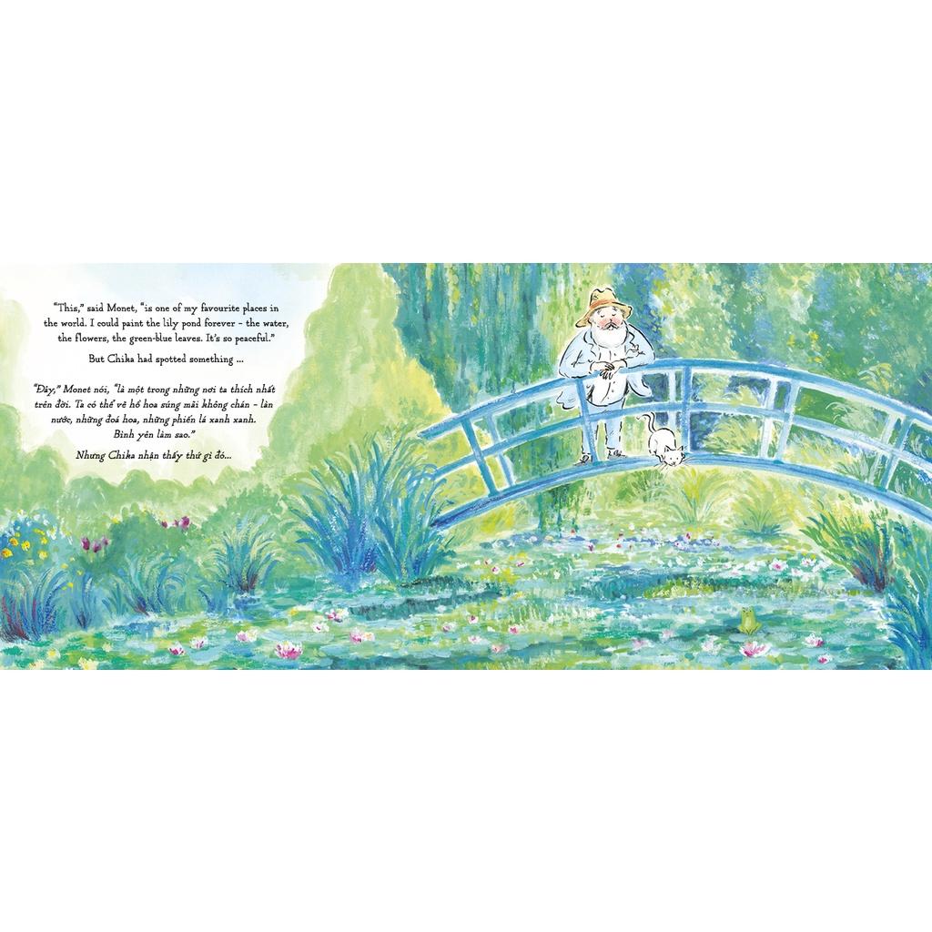Monet gõ nhẹ cây cọ vẽ ba lần. Chika “thức giấc” và cả hai bắt đầu chuyến phiêu lưu vào thế giới tranh vẽ đầy màu sắc. Cuốn sách song ngữ này sẽ cùng các bạn nhỏ khám phá những bức hoạ nổi tiếng của trường phái Ấn tượng.
