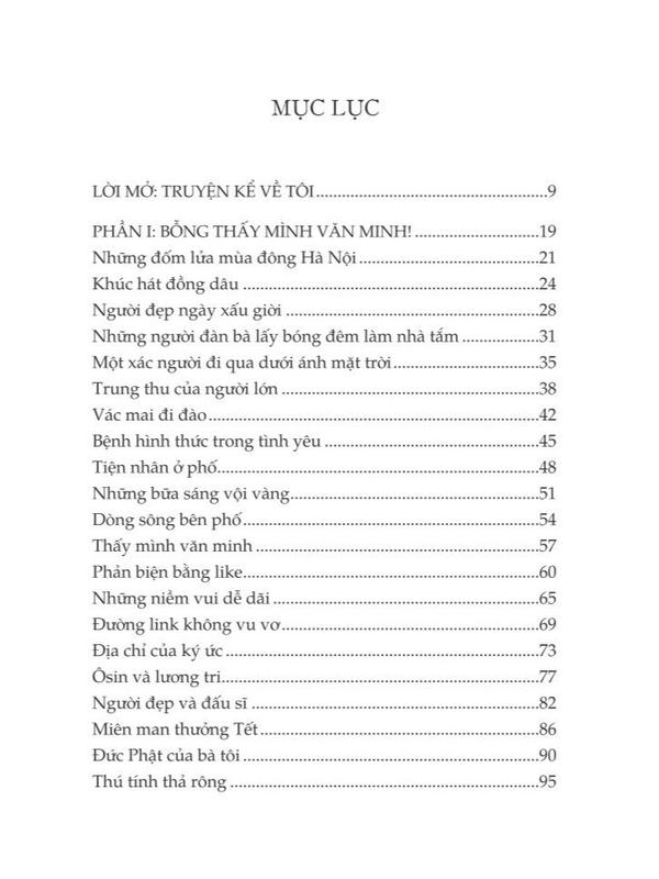 Mua tại TiktokTHÔNG TIN PHÁT HÀNH Tác giả: Phạm Trung Tuyến Nhà xuất bản: Hội nhà văn Số trang: 228 Kích thước: 14x20.5 cm Ngày phát hành: 12-2021 GIỚI THIỆU SÁCH Mỗi ngày ta sống xảy ra vô số điều hỗn tạp. Ta thương xót một chốc với điều này, phẫn nộ một lát với điều kia để cảm giác mình không bị lạc hậu thông tin, rồi quên. Nhưng tác giả cuốn sách này chọn nhìn sâu vào căn nguyên và lý giải sắc sảo những câu chuyện của đời sống đương đại. Một người lái taxi gây tai nạn hay là tội ác sinh ra từ nỗi sợ? Hành vi lộng hành của một ông quan hay sự tha hóa nhận thức về quyền lực nhà nước? Thói quen phản biện bằng like và share có phải là chỉ dấu cho sự hời hợt và thiếu trách nhiệm? Lũ học trò đồng thuận với hành vi đánh đập của cô giáo phải chăng bởi bạo lực đã được tập nhiễm chốn học đường? Và sự tiện thể trong lối sống phải chăng đã biến chúng ta thành những “tiện nhân ở phố”? Phẫn nộ, giễu cợt, nhưng lại đầy xót xa, nhân văn và giàu tinh thần trách nhiệm, cuốn sách dù được gợi ý từ những câu chuyện cụ thể luôn mở ra sâu rộng hơn, để ta cùng đọc và suy ngẫm. TÁC GIẢ: Phạm Trung Tuyến Nhà báo tại VOV, phó giám đốc kênh VOV Giao thông. Bé đi học, lớn đi họp, thỉnh thoảng yêu đương, lấy vợ vài lần, chủ yếu là nuôi con. Ngoài làm báo còn chăm chỉ nấu rượu bán để có thêm thu nhập.