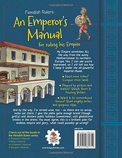 One of four books in our Fiendish Rulers series. In an Emperor’s Manual you will find rules governing everyday life and examples of previous emperors including the fiendish assassination of Julius Caesar. There are often gruesome ways of becoming an emperor but once in power, ruling an empire and its conquered people is not an easy task. There are tough rules and harsh punishments to dish out, armies & strategic battles to master and a great deal of entertainment to be organised in the emperor’s arenas!