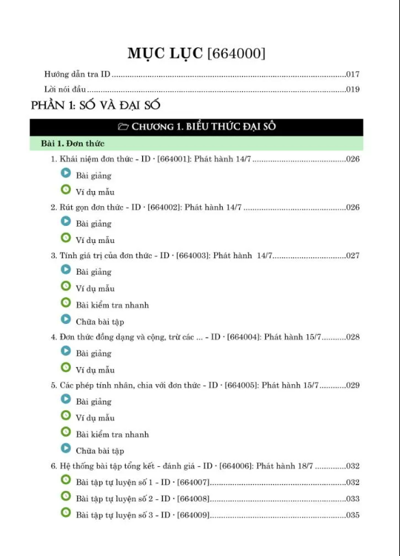 • Tự học Toán 8 – Tập 1 gồm 5 chương, xoay quanh hai mạch kiến thức: Số và Đại số, Một số yếu tố Thống kê và Xác suất. PHẦN I: SỐ VÀ ĐẠI SỐ Chương 1: BIỂU THỨC ĐẠI SỐ Chương 2: HÀM SỐ VÀ ĐỒ THỊ Chương 3: PHƯƠNG TRÌNH PHẦN II: MỘT SỐ YẾU TỐ THỐNG KÊ VÀ XÁC SUẤT Chương 4: MỘT SỐ YẾU TỐ THỐNG KÊ Chương 5: MỘT SỐ YẾU TỐ XÁC SUẤT Tập 2 : Hình học và toán tư duy Chương : ( đang cập nhật ) Mỗi chương được chia thành các bài học cụ thể. Trong mỗi bài, các em học sinh sẽ được tiếp cận kiến thức lý thuyết trọng tâm, đi kèm phần phân tích, diễn giải rõ ràng theo từng yêu cầu cần đạt của chương trình GDPT 2018. Các ví dụ mẫu kèm theo được chọn lọc kỹ lưỡng, gắn với thực tiễn học tập và định hướng kiểm tra – đánh giá, nhằm giúp các em hiểu sâu – nhớ lâu – làm được. Ngay sau phần lý thuyết là hệ thống bài tập tổng kết – đánh giá, được thiết kế theo lộ trình từ cơ bản đến nâng cao. Cuốn sách cũng giúp các em học sinh trả lời câu hỏi: “Làm thế nào để vượt qua các bài kiểm tra, bài thi hiện nay?” Từ bài kiểm tra giữa kỳ, cuối kỳ, thi học sinh giỏi đến những bài kiểm tra có các dạng thức mới tương tự kỳ thi Đánh giá năng lực, Đánh giá tư duy,... Tuy hình thức đề thi ngày càng đa dạng, nhưng bản chất của vấn đề vẫn chỉ xoay quanh một yếu tố cốt lõi – đó là kiến thức! Dù câu hỏi có thay đổi về dạng thức, cấu trúc hay ngữ cảnh đến đâu, mục tiêu cuối cùng vẫn là đánh giá mức độ hiểu và khả năng vận dụng kiến thức của các em. Trước kho tàng tri thức, các phương pháp, mẹo hay thủ thuật thực chất chỉ là kinh nghiệm được tích lũy sau quá trình rèn luyện lâu dài.