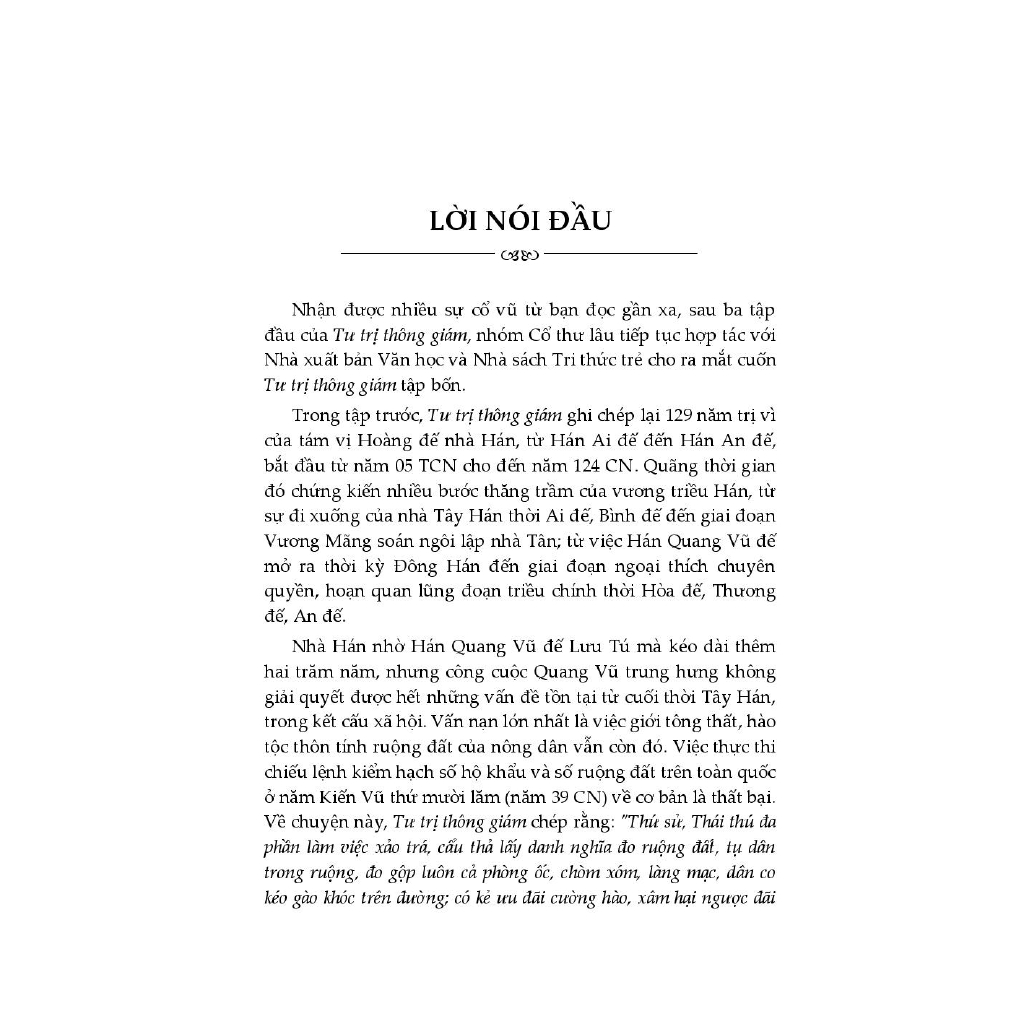Tư Trị Thông Giám Nhận được nhiều sự cổ vũ từ bạn đọc gần xa, sau ba tập đầu của Tư trị thông giám, nhóm Cổ thư lâu tiếp tục hợp tác với Nhà xuất bản Văn học và Nhà sách Tri thức trẻ cho ra mắt cuốn Tư trị thông giám tập bốn. Trong tập trước, Tư trị thông giám ghi chép lại 129 năm trị vì của tám vị Hoàng đế nhà Hán, từ Hán Ai đế đến Hán An đế, bắt đầu từ năm 05 TCN cho đến năm 124 CN. Quãng thời gian đó chứng kiến nhiều bước thăng trầm của vương triều Hán, từ sự đi xuống của nhà Tây Hán thời Ai đế, Bình đế đến giai đoạn Vương Mãng soán ngôi lập nhà Tân; từ việc Hán Quang Vũ đế mở ra thời kỳ Đông Hán đến giai đoạn ngoại thích chuyên quyền, hoạn quan lũng đoạn triều chính thời Hòa đế, Thương đế, An đế. Tư trị thông giám tập bốn trong tay bạn đọc gồm 18 quyển, ghi lại giai đoạn gần một trăm năm cuối vương triều Đông Hán với xu hướng ngày càng suy tàn, mà việc phân tích những căn nguyên của xu hướng ấy và lý do ra đời cục diện Tam quốc phân tranh sẽ để lại cho chúng ta nhiều bài học đắt giá. Tư trị thông giám tập ba và tập bốn nối tiếp nhau chép lại một chuỗi các sự kiện liên tục có tính chất quyết định hướng đi của nhà Đông Hán, đó là sự trỗi dậy của thế lực ngoại thích, lực lượng hoạn quan xuất hiện, tập đoàn sĩ đại phu tham chiến, các quân phiệt địa phương nổi dậy cát cứ. Tất cả bắt đầu từ tình trạng vua còn nhỏ, thái hậu lâm triều, ngoại thích hoành hành, điều này vốn từng xuất hiện trong thời kỳ nhà Tây Hán (trường hợp Lã hậu). Ở tập ba, Hán Hòa đế lên ngôi năm 11 tuổi, Đậu Thái hậu lâm triều, Đậu Hiến giữ chức Đại tướng quân, lại được ban địa vị trên cả Tam công, là kẻ hung bạo tàn nhẫn, giết hại triều thần; anh em Đậu gia lại hung hăng càn quấy, cưỡng đoạt tài vật, cướp bắt phụ nữ, không điều ác nào không làm. Hán An đế lên ngôi năm 13 tuổi, Đặng Thái hậu lâm triều, mặc dù trị lý hiệu quả, lại cố gắng ước thúc Đặng gia, nhưng rốt cuộc vẫn có chuyện Tư không Viên Sưởng vì cương trực không bè phái với họ mà bị bức tự sát, Hộ Khương hiệu úy Nhâm Thượng tranh công với Đặng Tuân mà bị chém đầu… Ở Tư trị thông giám tập bốn, chúng ta có thể tìm thấy những nguyên nhân khiến nhà Đông Hán suy tàn dẫn đến thế cục cát cứ tiền Tam quốc. Giai đoạn Tam quốc có thể không quá xa lạ với bạn đọc Việt Nam nhờ sự phổ biến của tiểu thuyết lịch sử Tam Quốc diễn nghĩa, và gần đây là nhờ sự ra đời bản dịch bộ chính sử Tam Quốc chí - một công trình biên dịch của các thành viên sáng lập nên nhóm Cổ thư lâu sau này. Tam Quốc chí của Trần Thọ được viết theo thể kỷ truyện, tập trung vào từng nhân vật cụ thể, do đó giới thiệu được cái ưu khuyết, điểm được mất, đóng góp lớn nhỏ của từng nhân vật. Mỗi sự kiện trong Tam Quốc chí cũng vì vậy mà có thể được nhìn nhận qua nhiều góc cạnh khác nhau, từ những cách nhìn khác nhau của mỗi nhân vật. Với Tư trị thông giám, đọc Tam quốc lại là một trải nghiệm thú vị khác. Nhờ đặc thù của thể biên niên, giai đoạn Tam quốc được trình bày mạch lạc thứ tự, nhấn mạnh điểm cốt yếu, giúp độc giả nắm bắt được diễn tiến toàn cục. Đóng góp lớn nhất của Tư Mã Quang và cộng sự chính là đã tuyến tính hóa, sắp xếp lại các sự kiện theo diễn biến thời gian. Nhờ vậy, người đọc có thể dễ dàng theo dõi các chuỗi sự kiện phức tạp và kéo dài, chẳng hạn như các chiến dịch quân sự. Cũng nhờ vậy, khi nghiên cứu một sự kiện trong Tư trị thông giám, rất dễ dàng tìm kiếm những sự kiện trước nó và sau nó, hỗ trợ cho người đọc khi có nhu cầu nghiên cứu về các quan hệ nhân quả, các đầu dây mối nhợ của nhiều biến động xã hội khác nhau. Một ví dụ điển hình là chiến dịch Quan Độ kéo dài mười bảy tháng với rất nhiều diễn biến phức tạp giữa nhiều thế lực liên quan, đã được biên chép rất gọn gàng và dễ dàng tra cứu. Tư trị thông giám tập bốn kết thúc với cái chết của Quan Vũ sau khi Kinh châu thất thủ, dự báo một cuộc Đông chinh báo thù thảm liệt của Lưu Bị với chiến dịch Di Lăng. Đấy sẽ là một trong rất nhiều nội dung thú vị mà bạn đọc có thể tìm thấy ở tập năm Tư trị thông giám. Xin trân trọng giới thiệu cùng bạn đọc./.