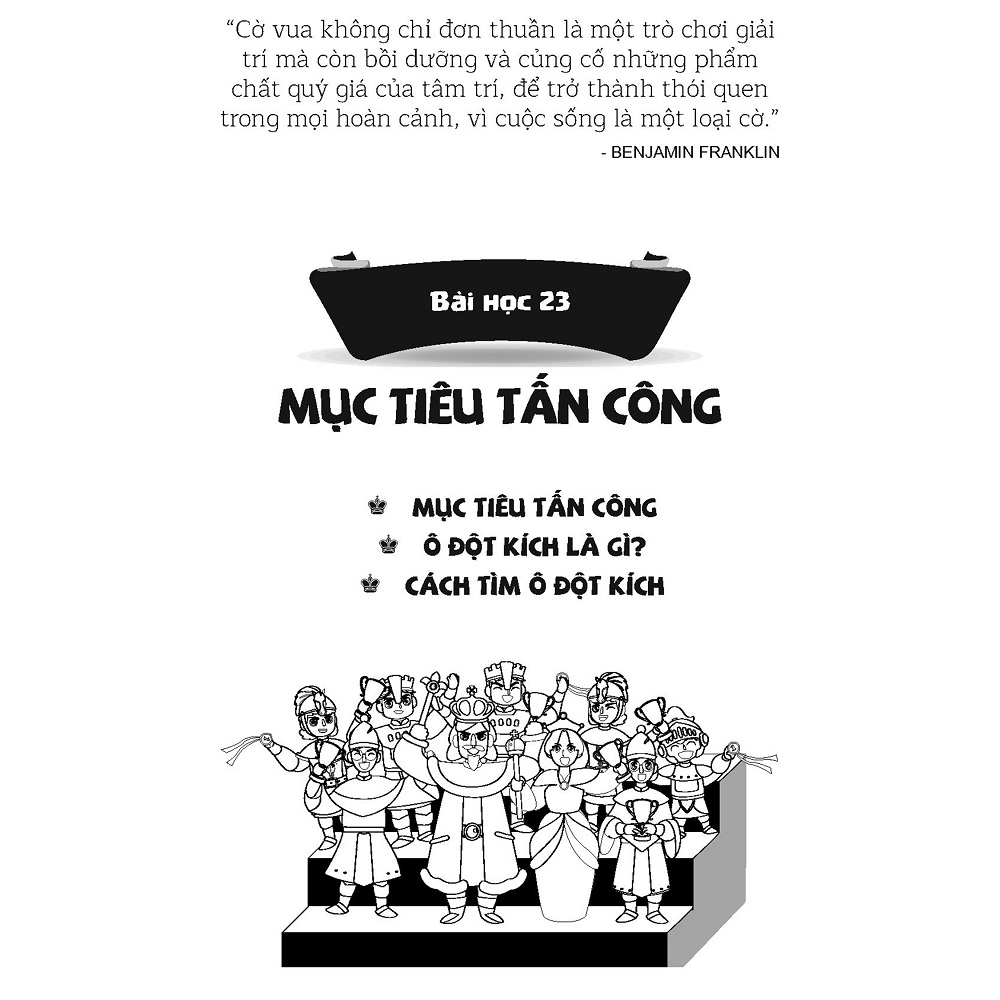 Ở tập 2 này, các em sẽ tiếp tục hành trình chinh phục thế giới cờ vua với những nội dung nền tảng như sau: cách tấn công vào các mục tiêu, cách phòng thủ có tính đến giá trị của các quân cờ, điểm xung đột, đòn chiến thuật tấn công đôi, những phương pháp chiếu hết căn bản, nguyên tắc khai cuộc và những sai lầm trong khai cuộc cần tránh, giúp các em tự tin hơn khi giao lưu cờ vua với các bạn.